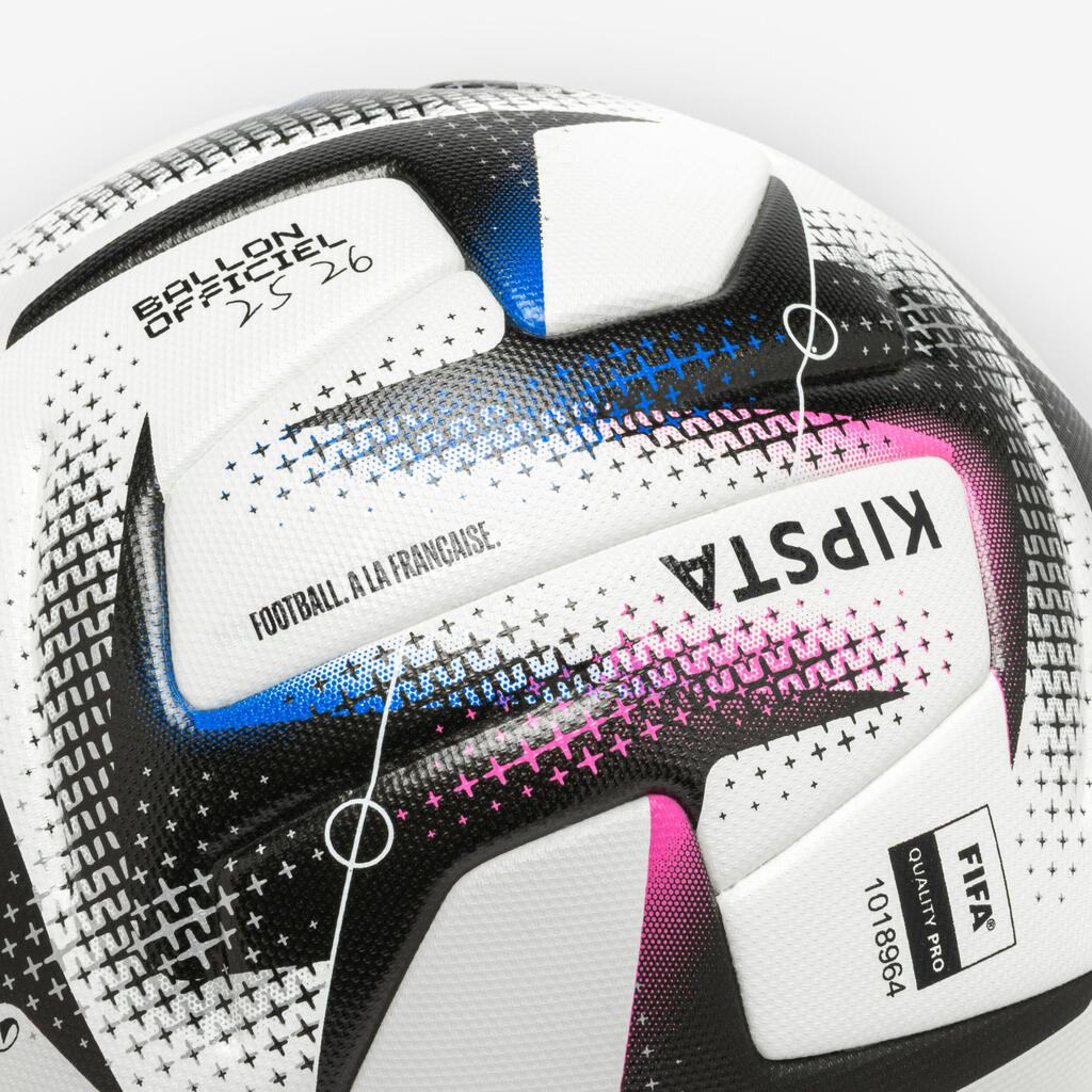 Développé en co-conception avec les joueurs de Ligue 1 McDonald’s et de Ligue 2 BKT, ce ballon est le fruit de plusieurs années de R&D. Il intègre les attentes précises des joueurs et gardiens de haut niveau.