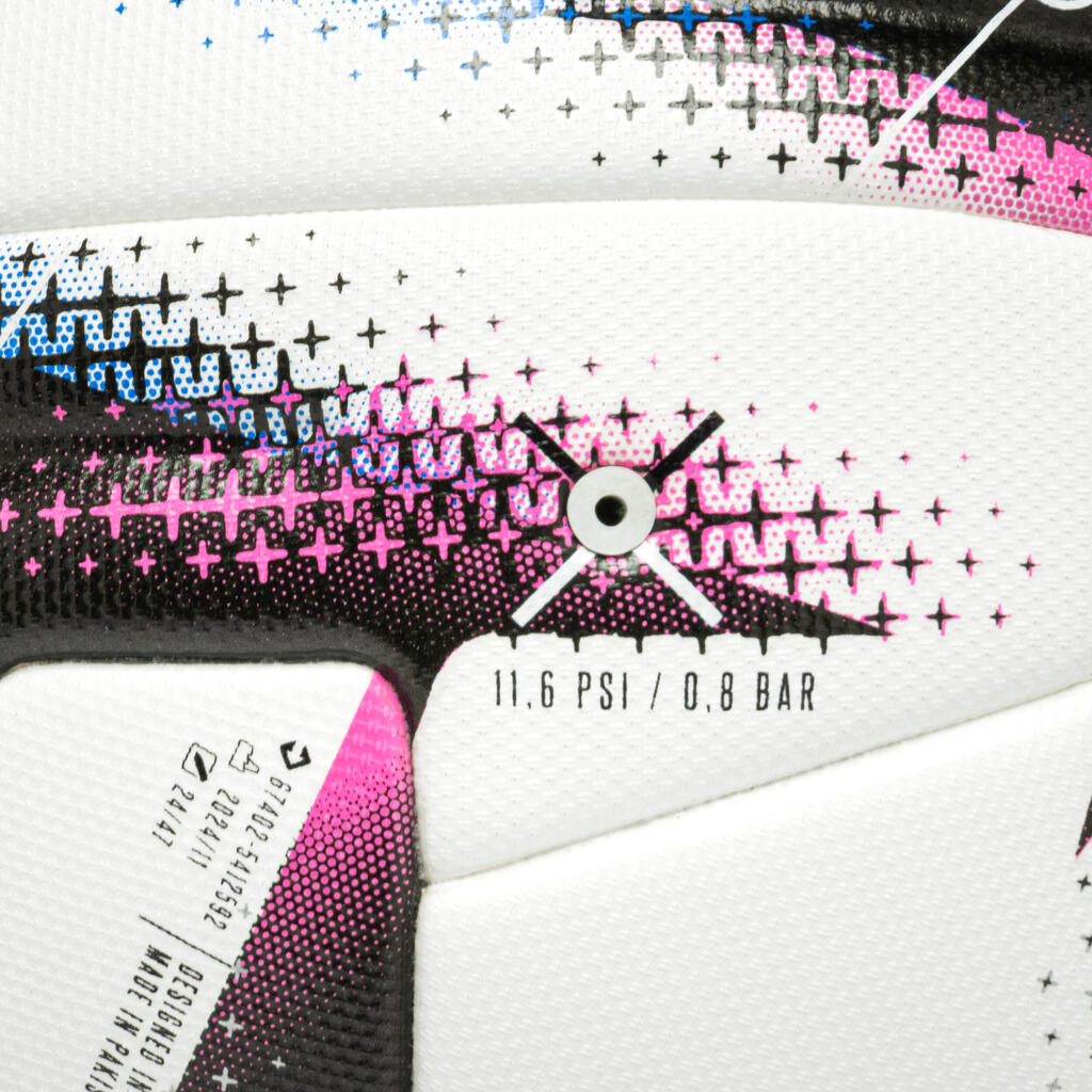 Conçu à 100 % en France, ce ballon est validé par des tests rigoureux, en labo comme sur le terrain. Il respecte les normes FIFA et intègre un protocole spécifique développé par Decathlon.