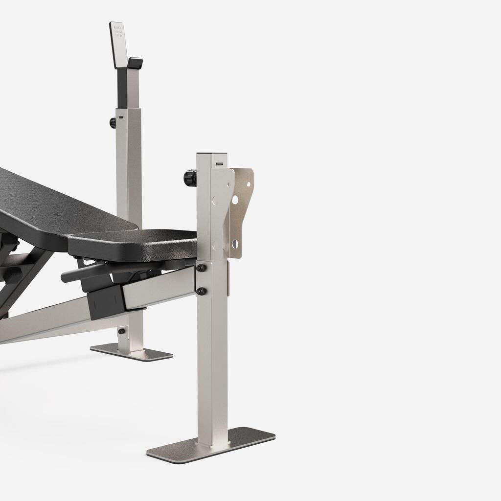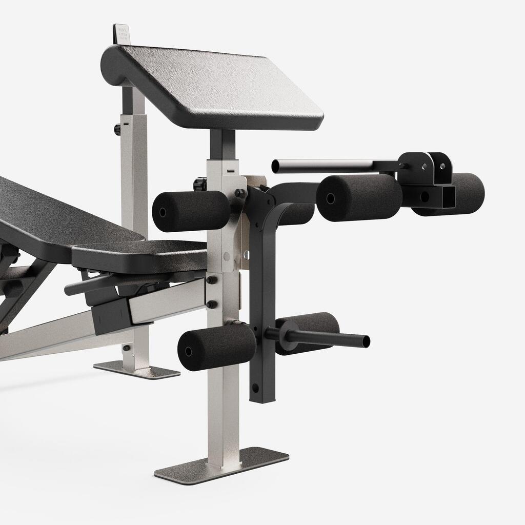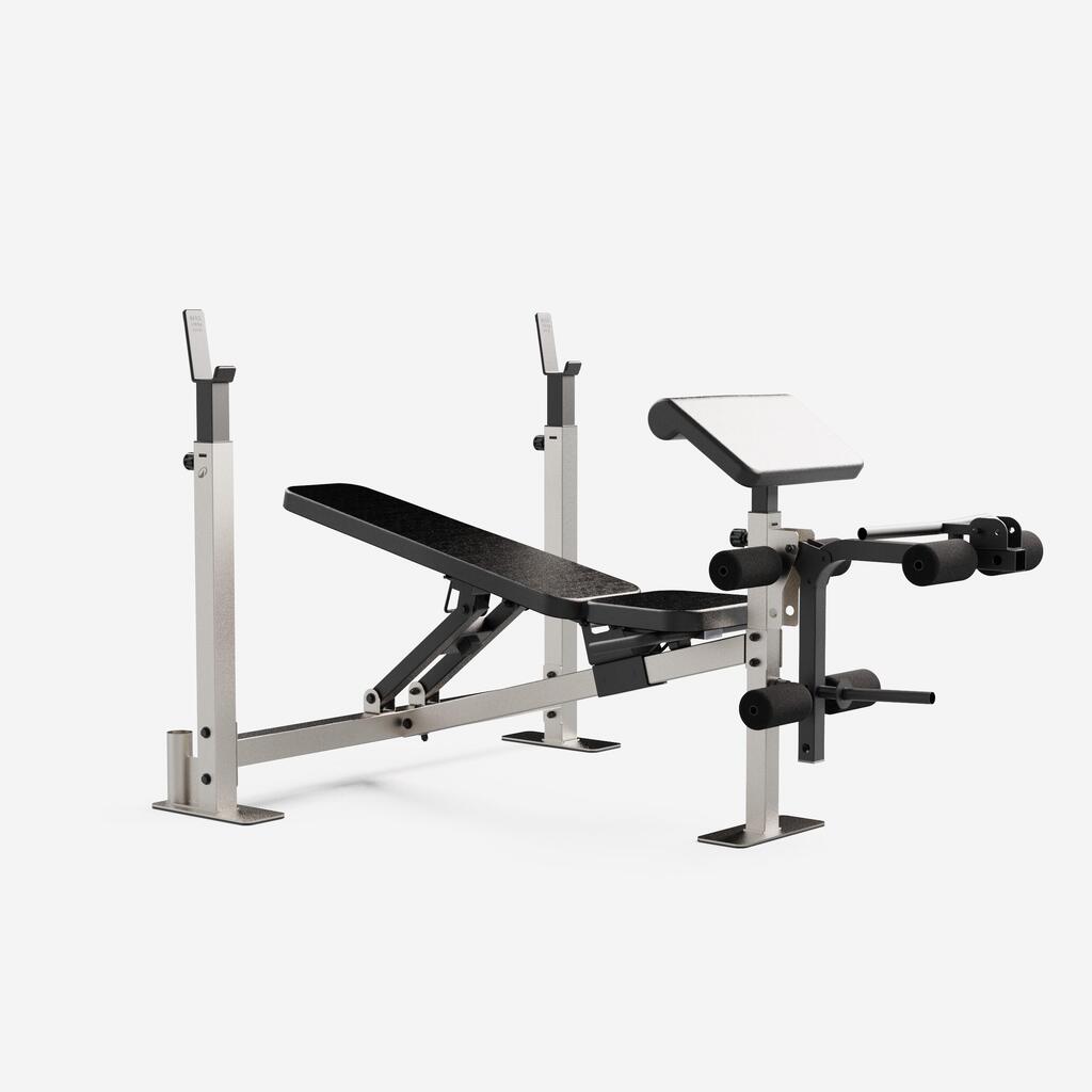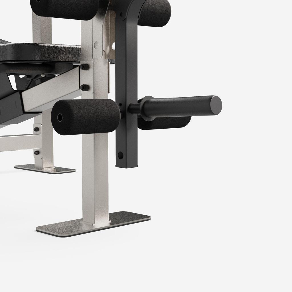 Profitez d'une structure acier ultra-stable supportant 220kg (max 120 kg sur chandelles et max 100 kg poids utilisateur). Dossier réglable de -15° à 80° pour l'adapter selon vos séances.