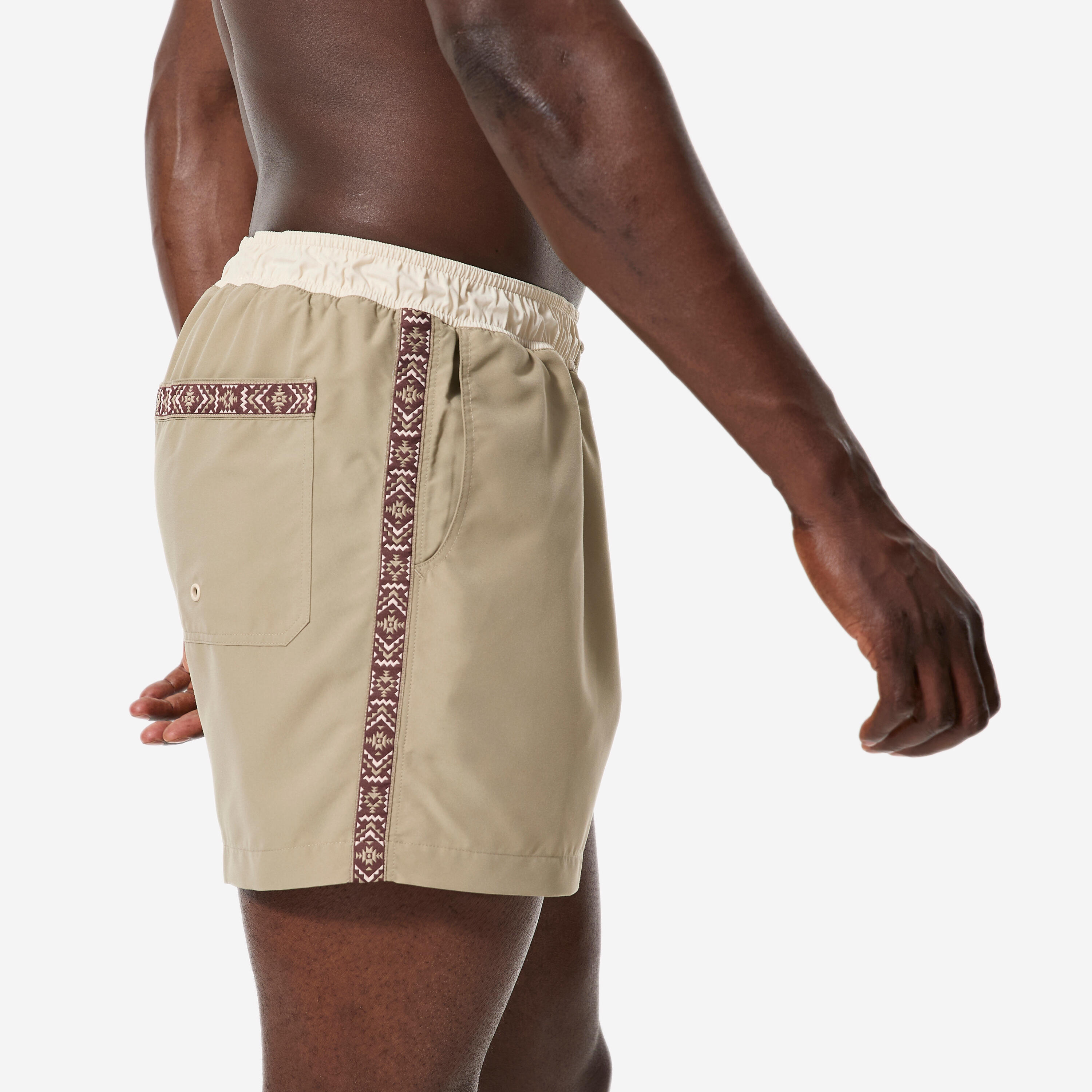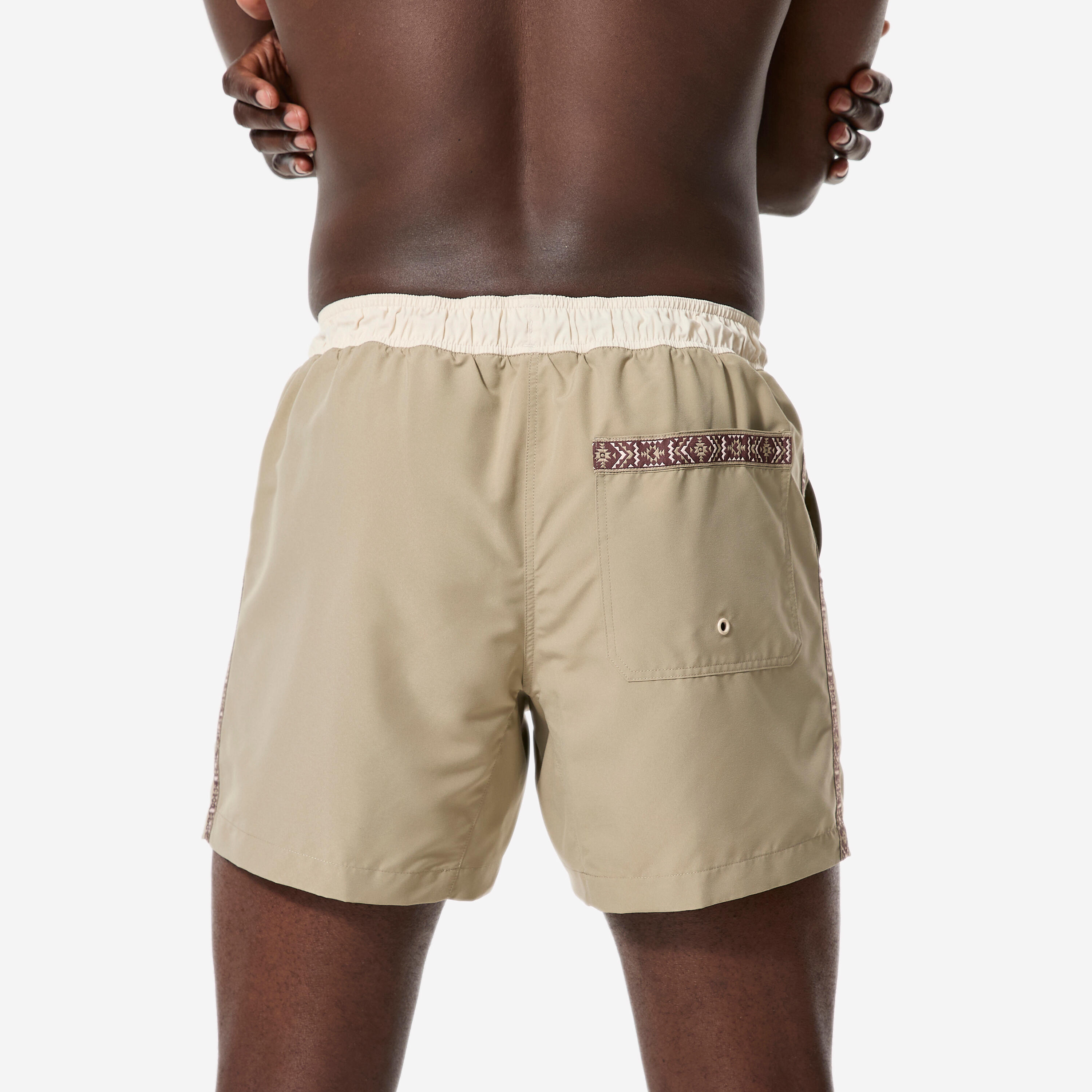 Boardshort surf short de bain court 15" homme, 100 Géo retro beige