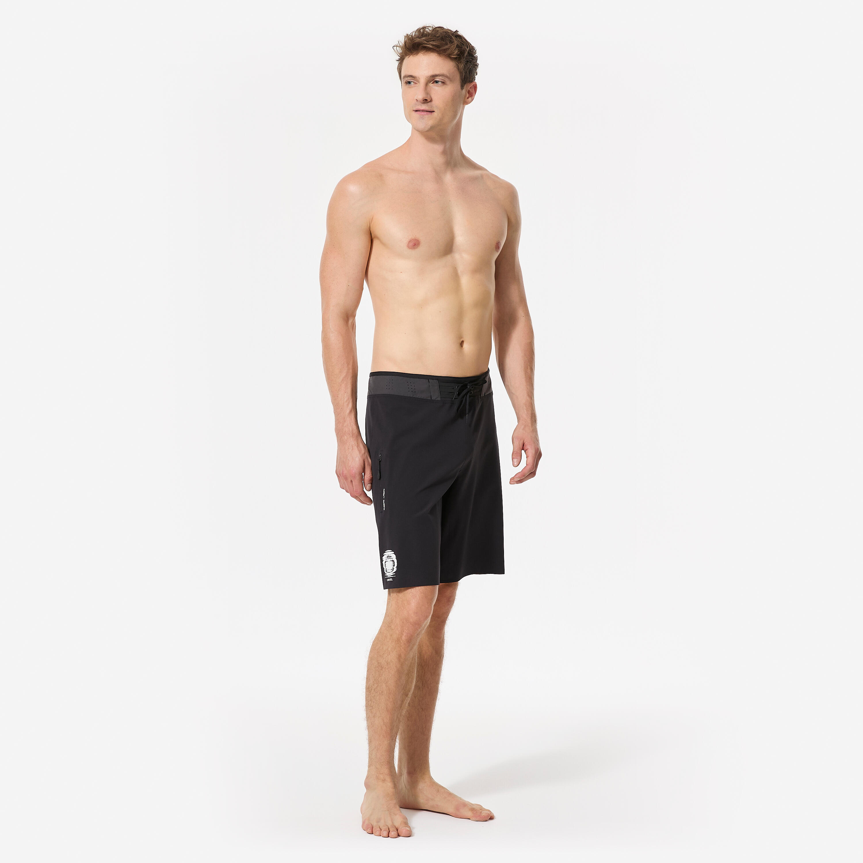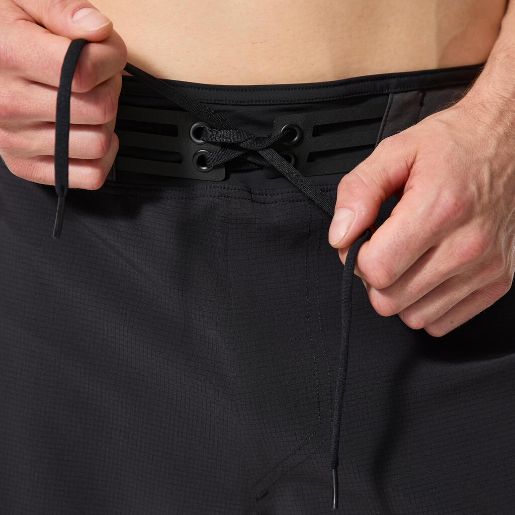 Ceinture élastique : s'adapte à toutes les morphologies. Cordon de serrage pour le maintien dans les vagues.