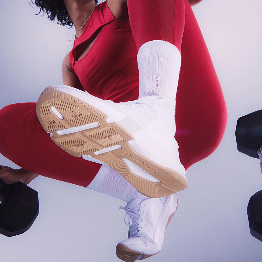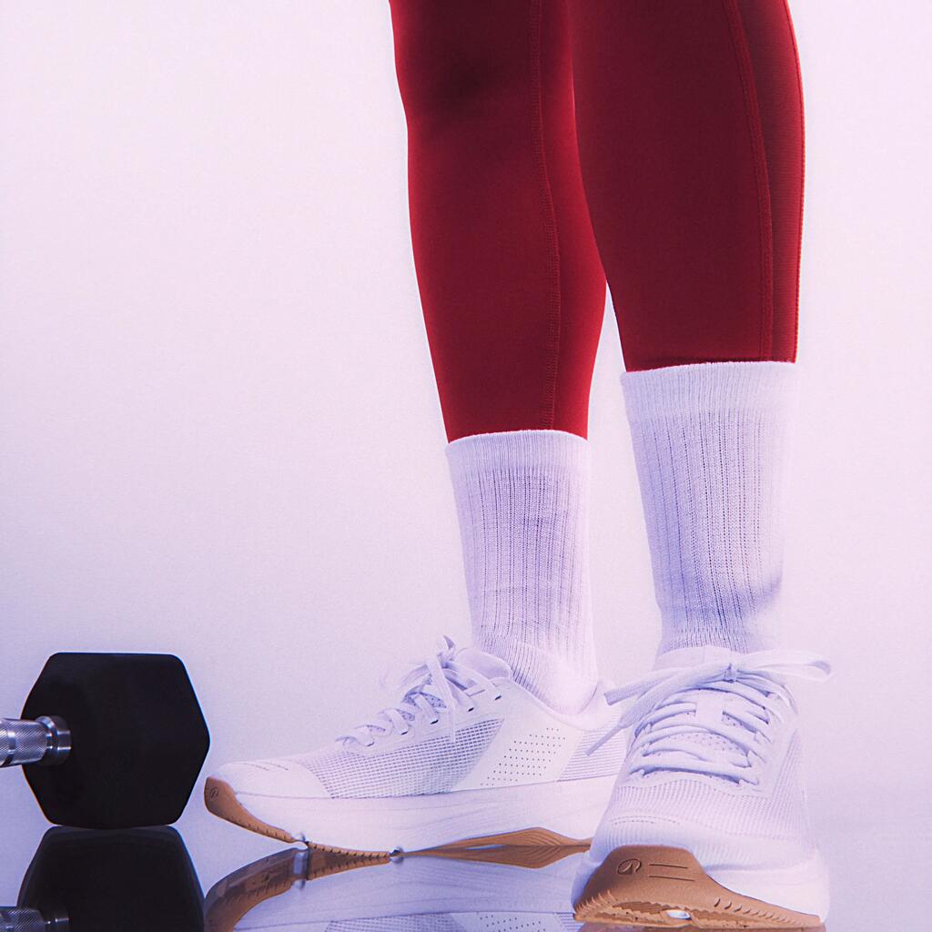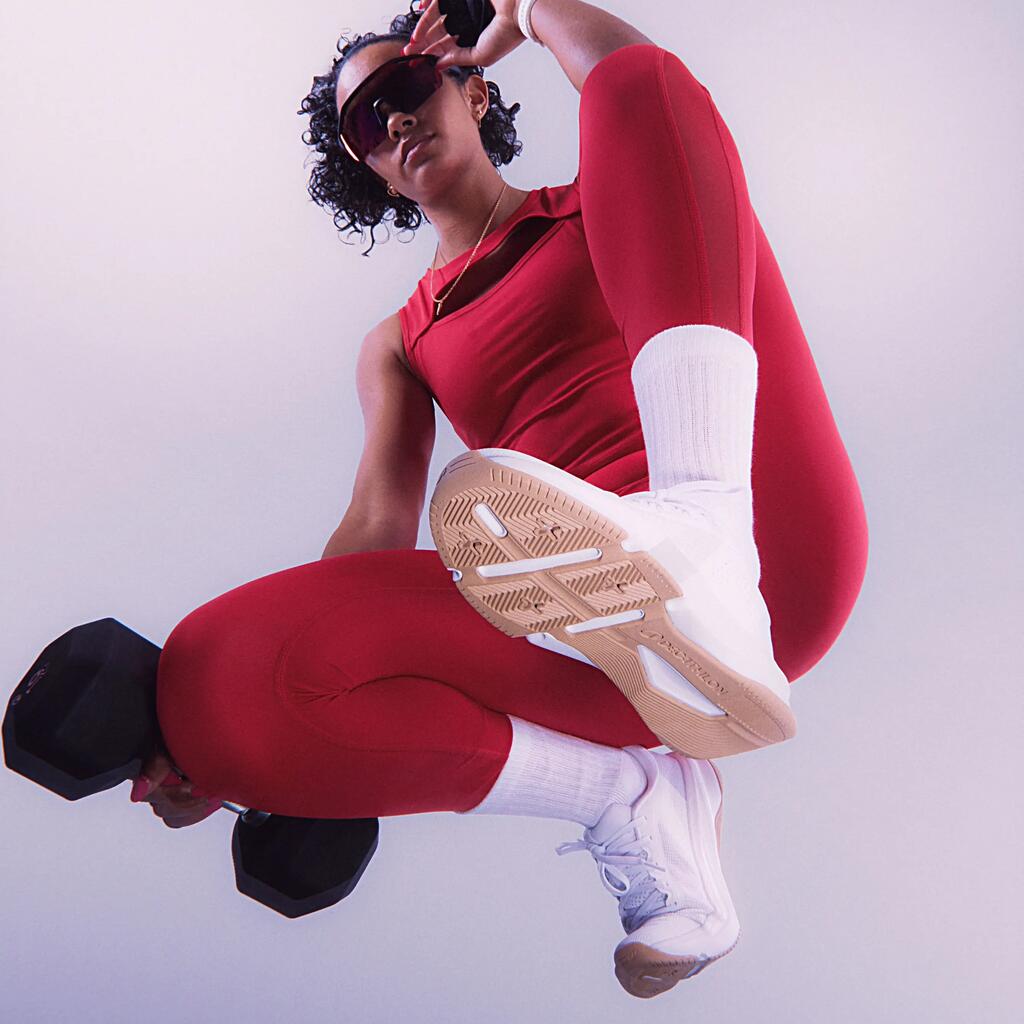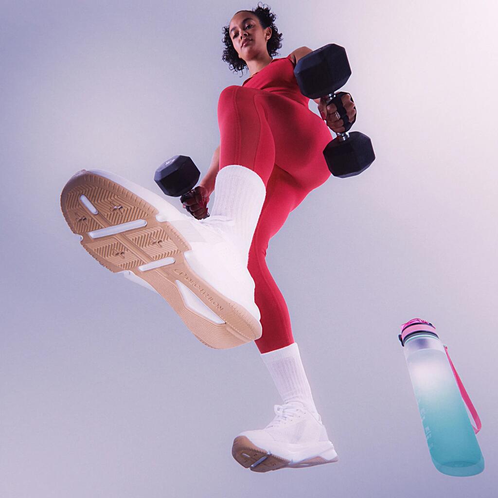 Sa semelle à base élargie combine stabilité renforcée et absorption des impacts à haute intensité. De quoi vous dépasser en toute confiance dans vos exercices les plus intenses.