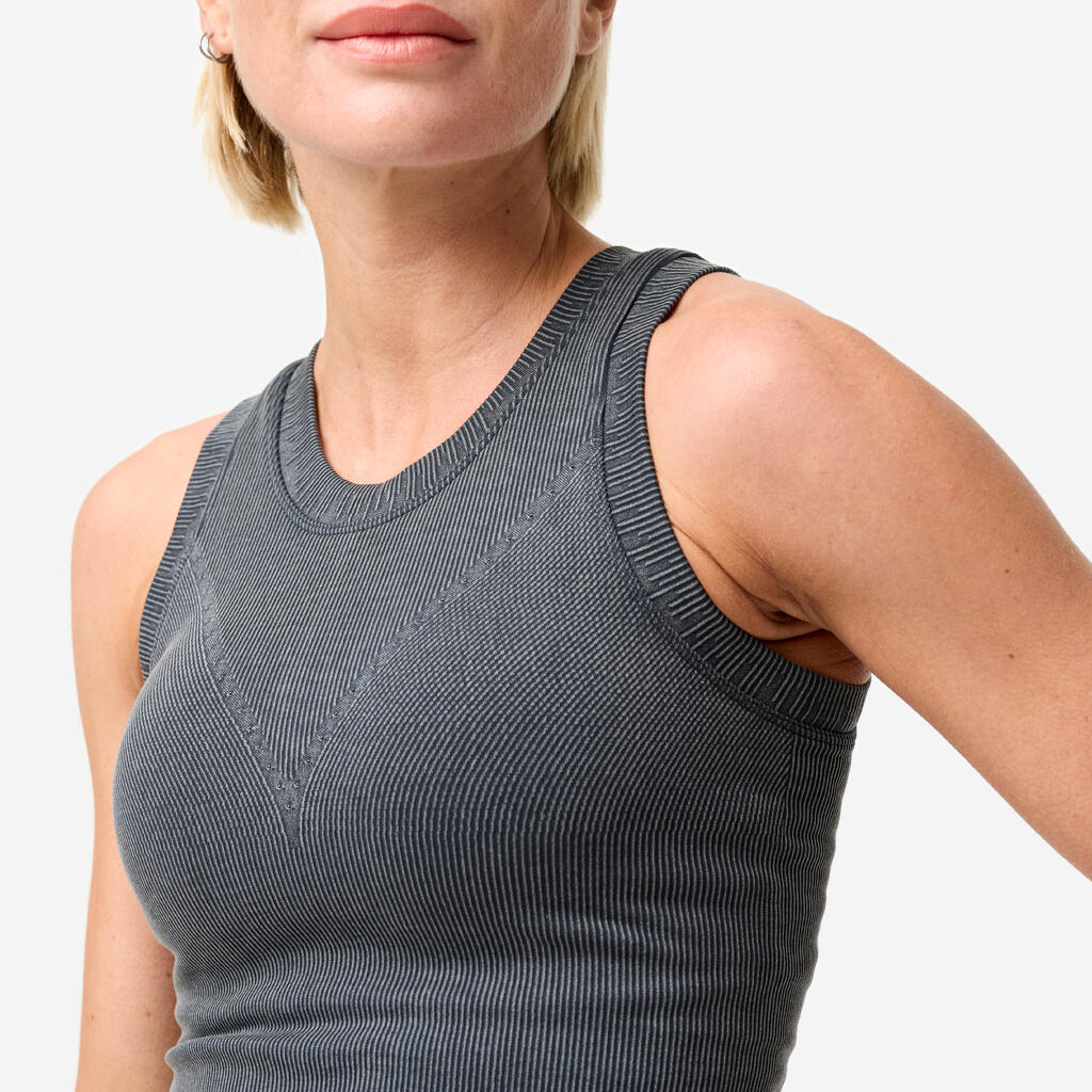 Débardeur court côtelé avec brassière intégrée femme gris effet délavé