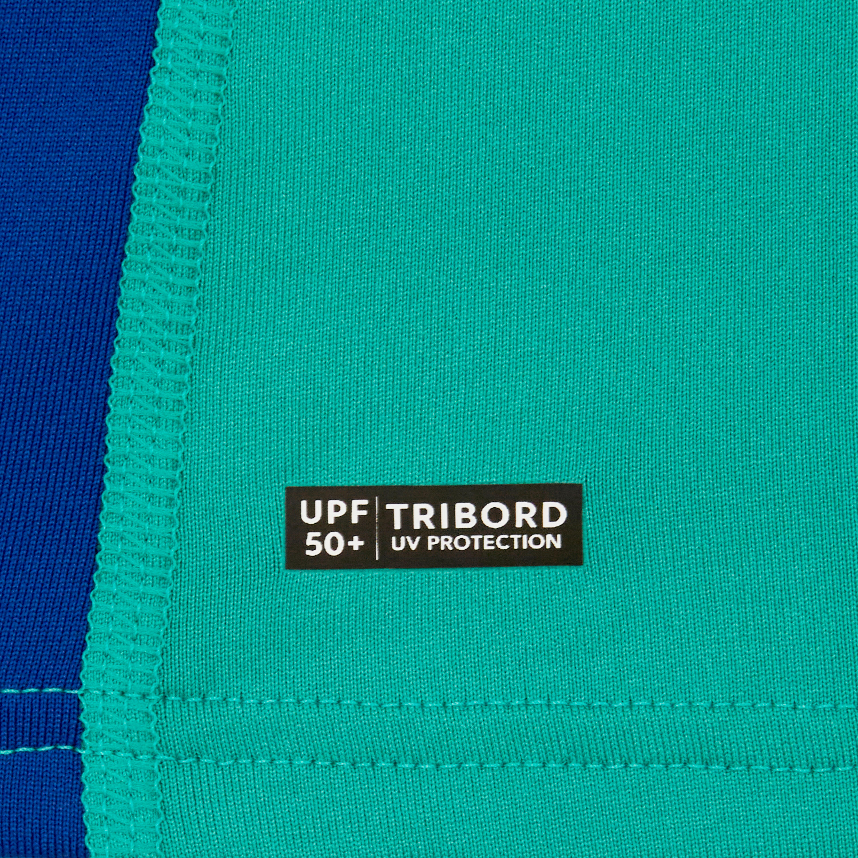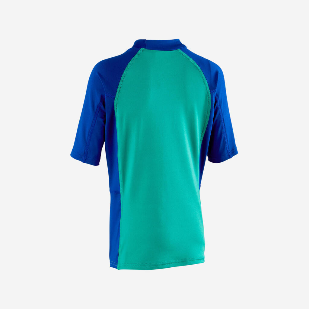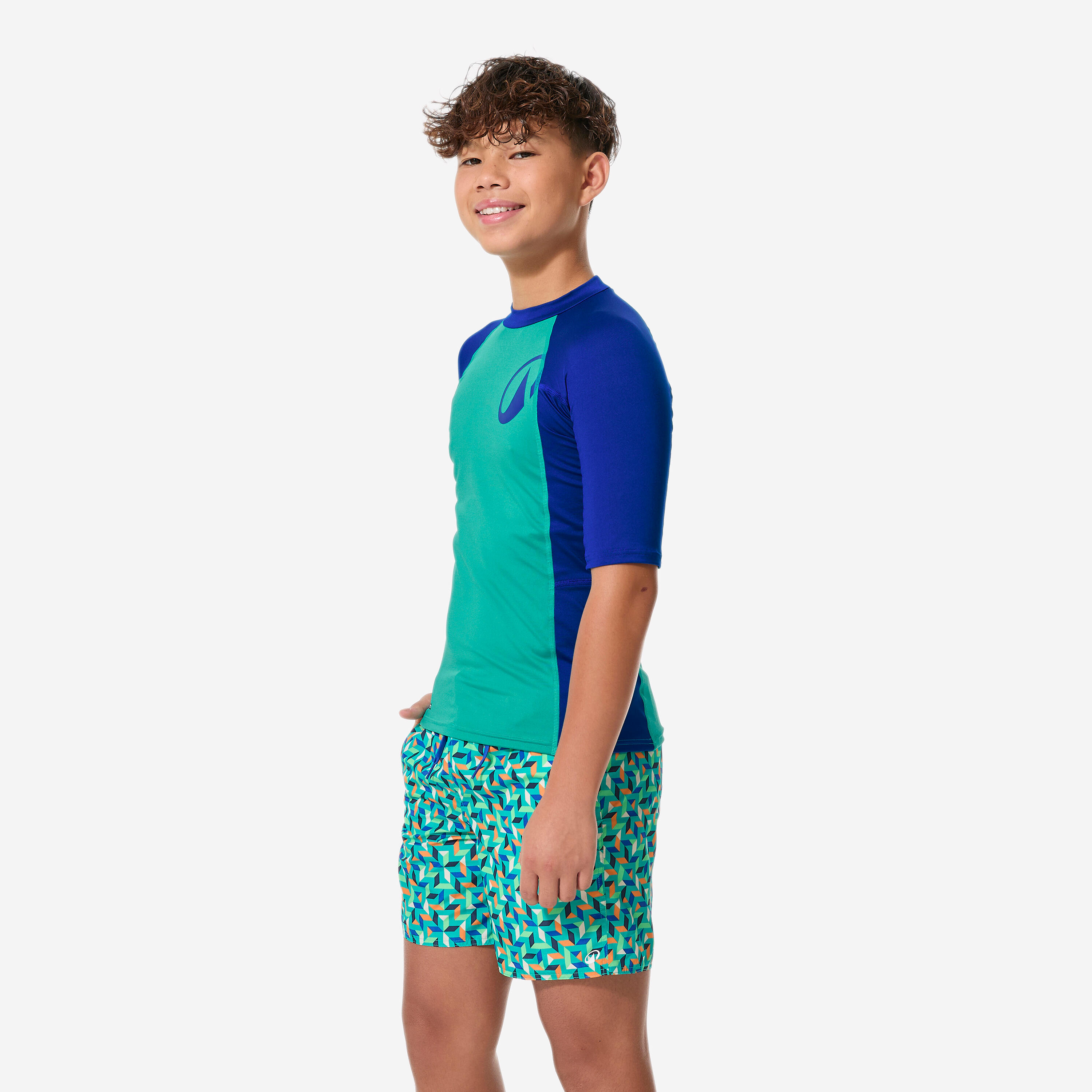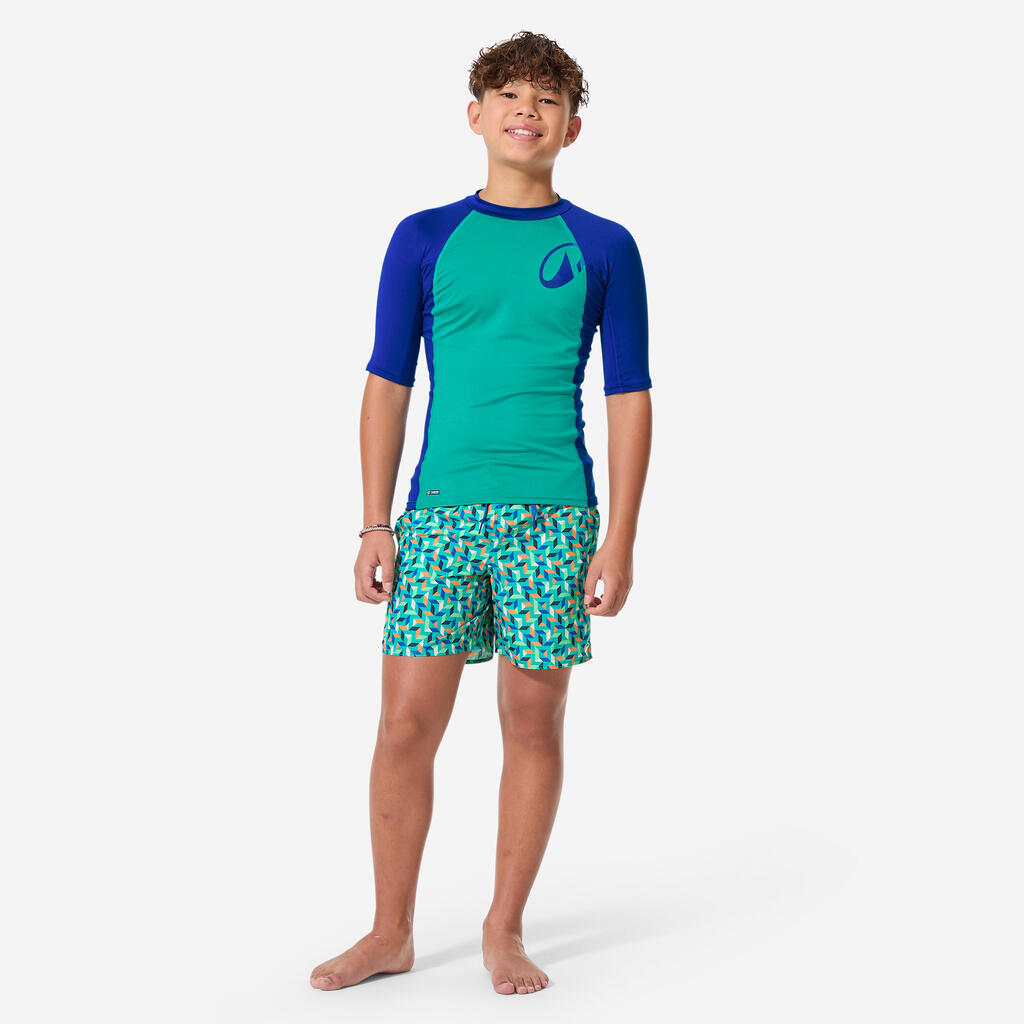 Top anti uv surf manches courtes garçon, 500 bleu et vert