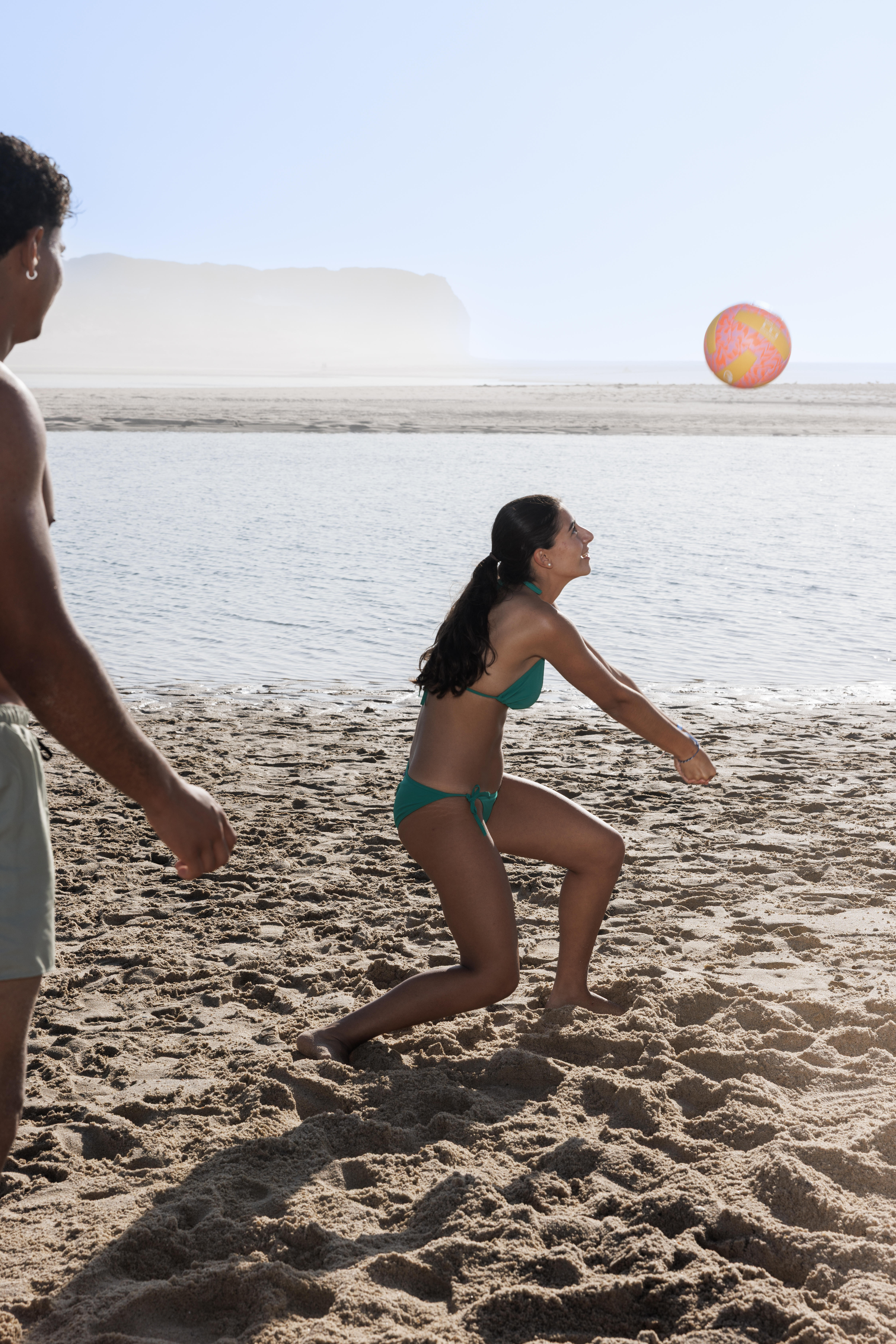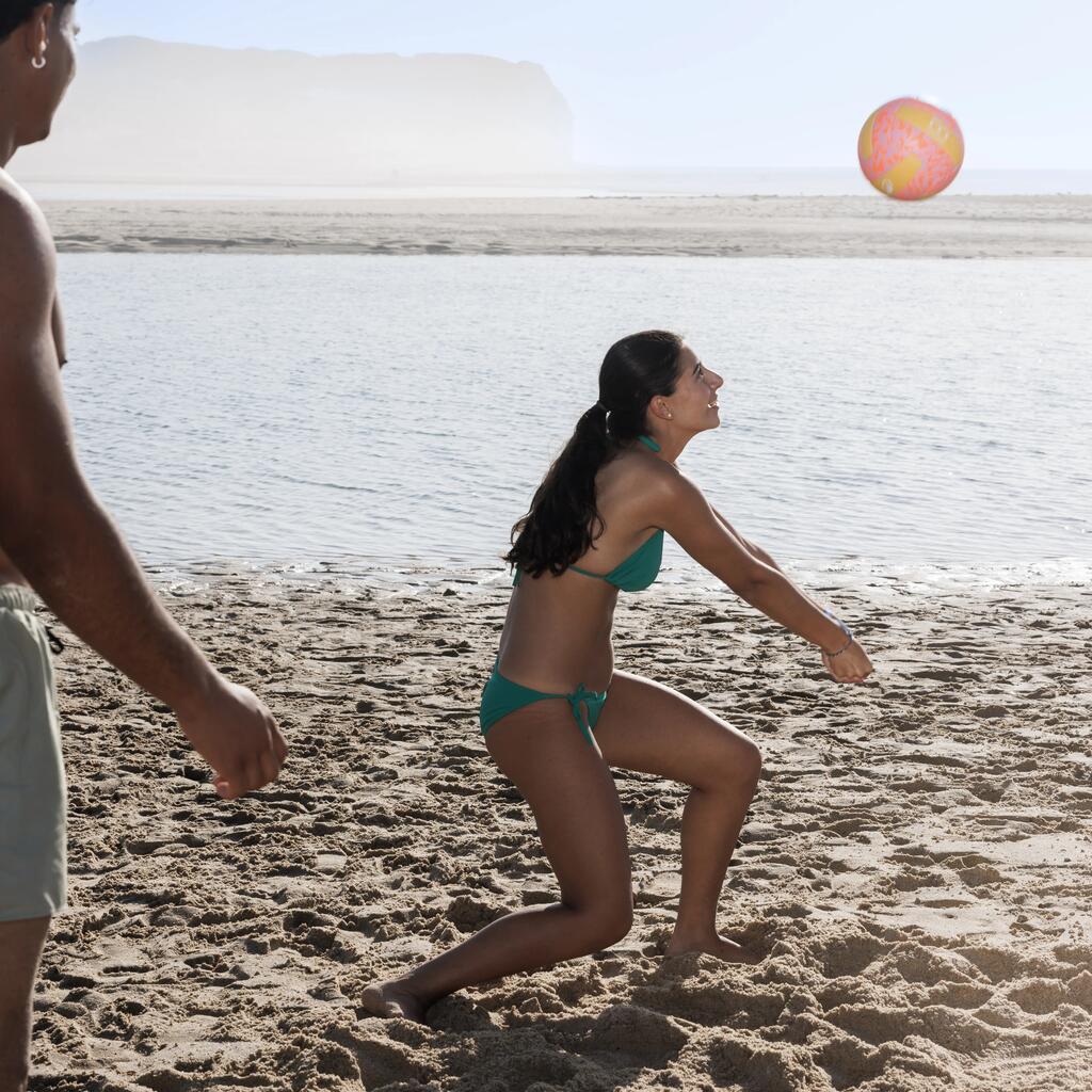 D'un poids entre 260 à 280 g pour une circonférence de 66 à 67 cm, ce ballon répond aux normes officielles du beach-volley pour un usage conforme à la pratique.