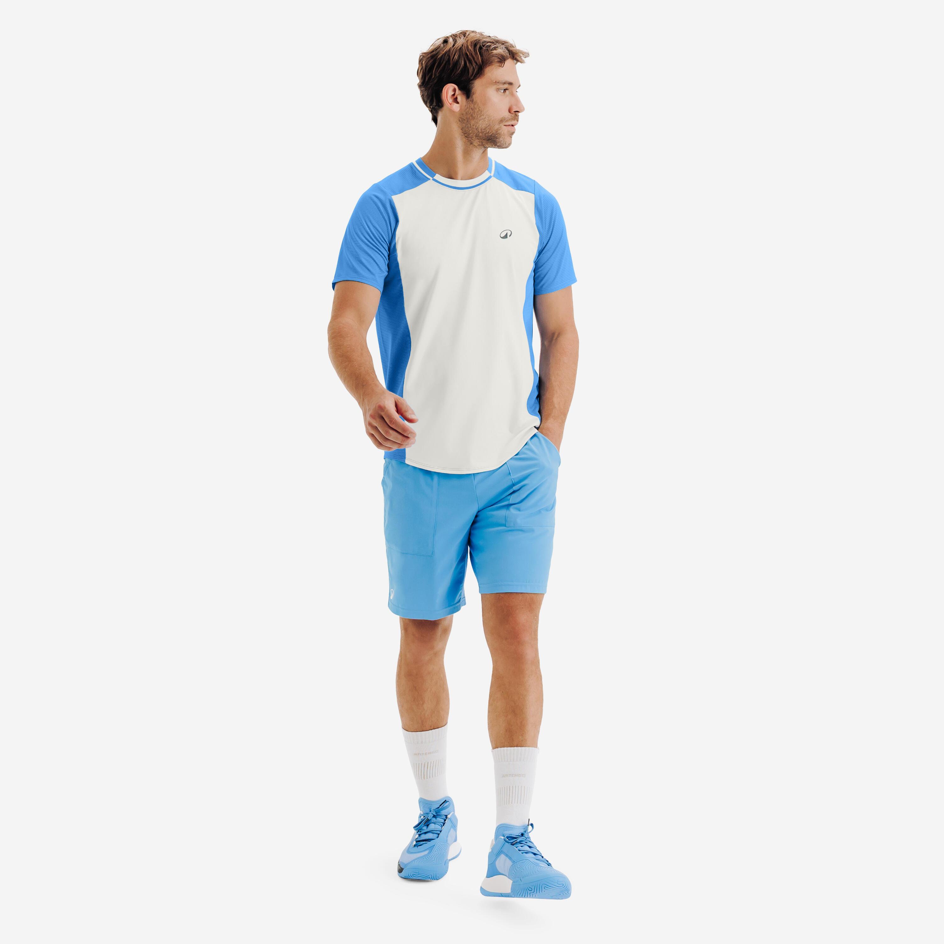 T-shirt de tennis respirant homme, Dry bleu blanc