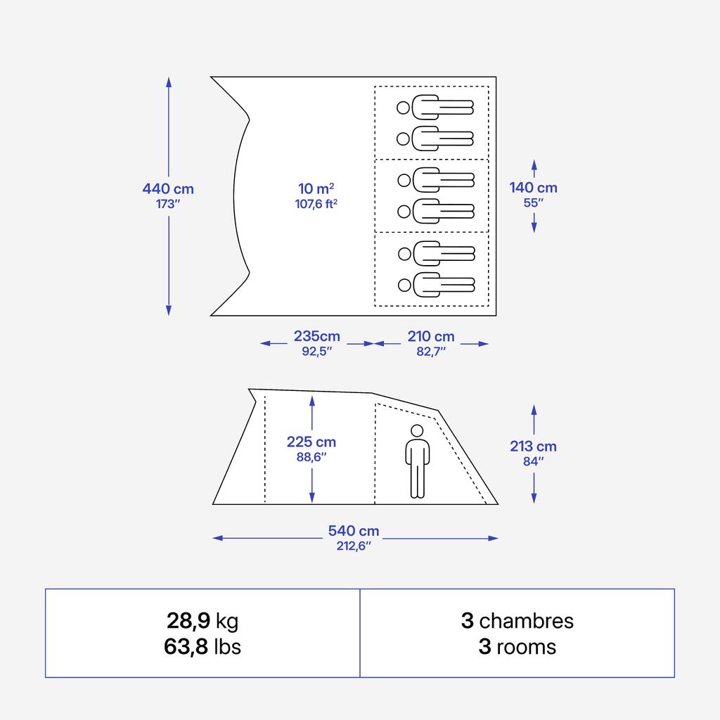 Profitez d'un grand espace pour vivre et partager des moments ensemble. Cette tente est conçue pour réunir famille et amis lors de vos sorties camping.