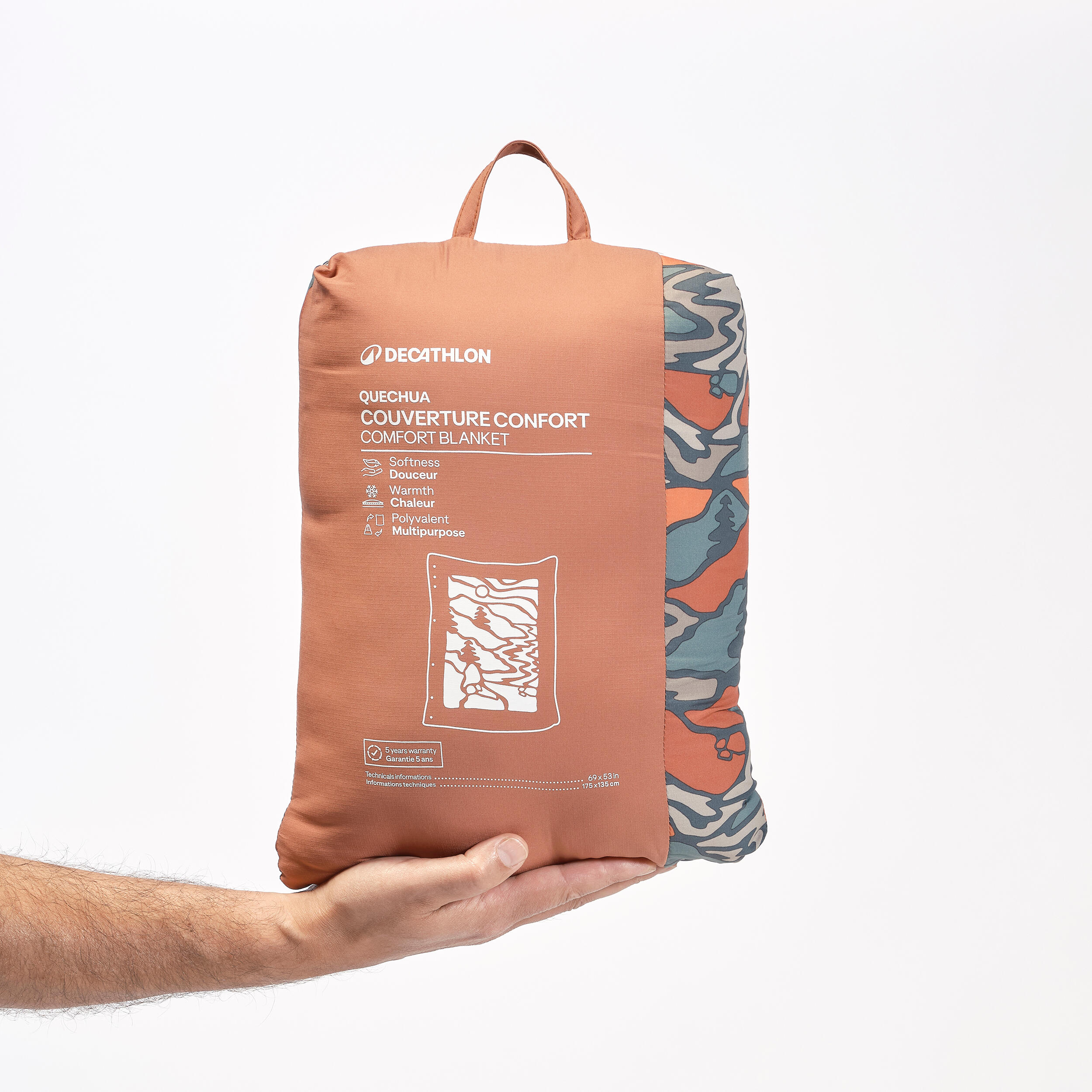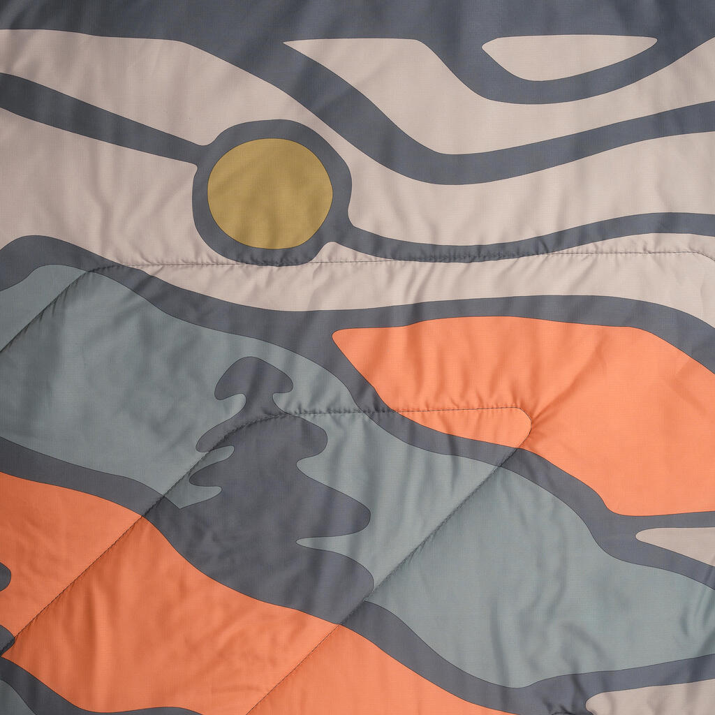 Cette couverture polyvalente 3 en 1 vous accompagne partout. Utilisez-la en complément de votre sac de couchage, en version cape ou en oreiller d’appoint.