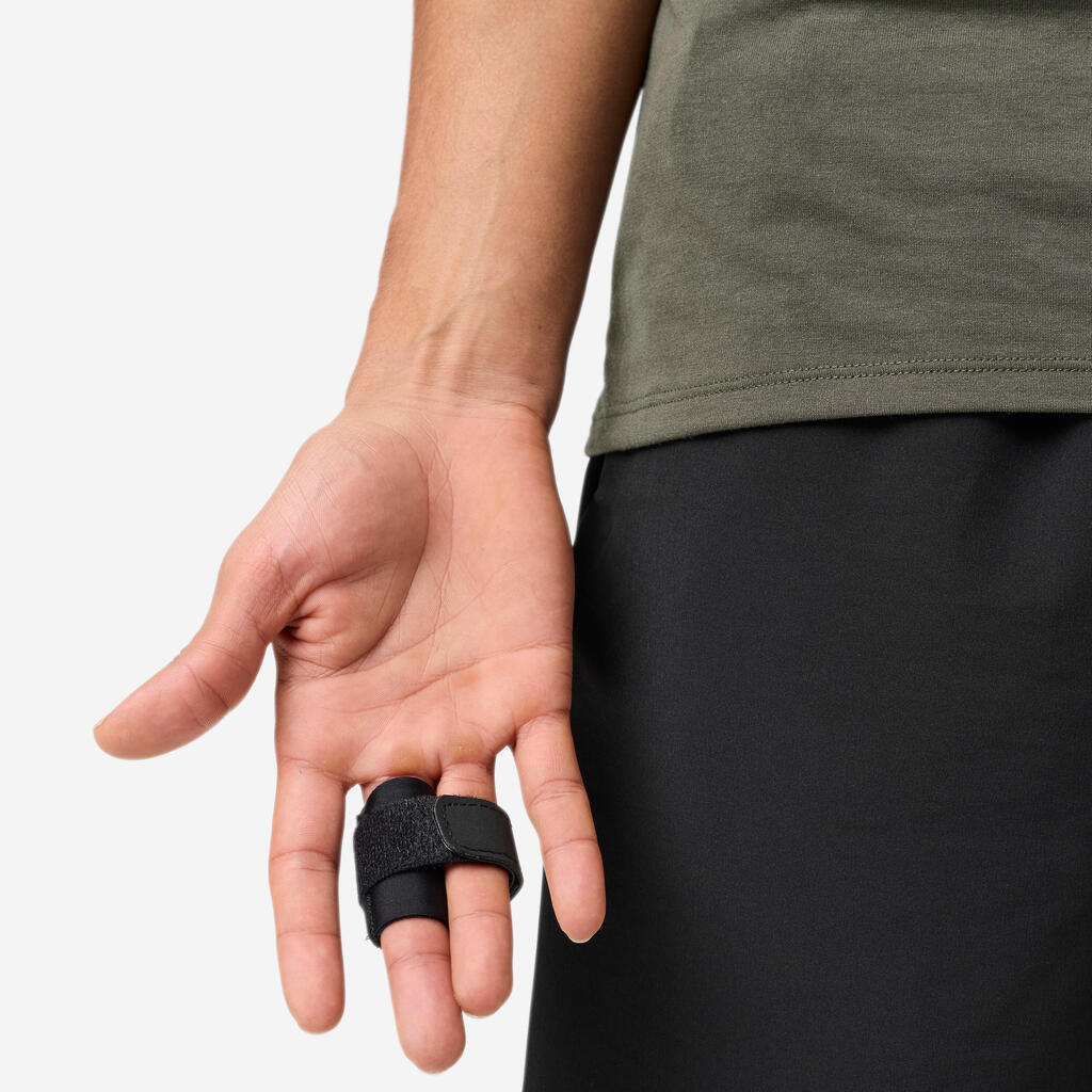 Grâce à sa sangle de serrage, ce strap maintient efficacement en position neutre n'importe quel doigt, sauf le pouce, lors de toutes vos activités sportives.