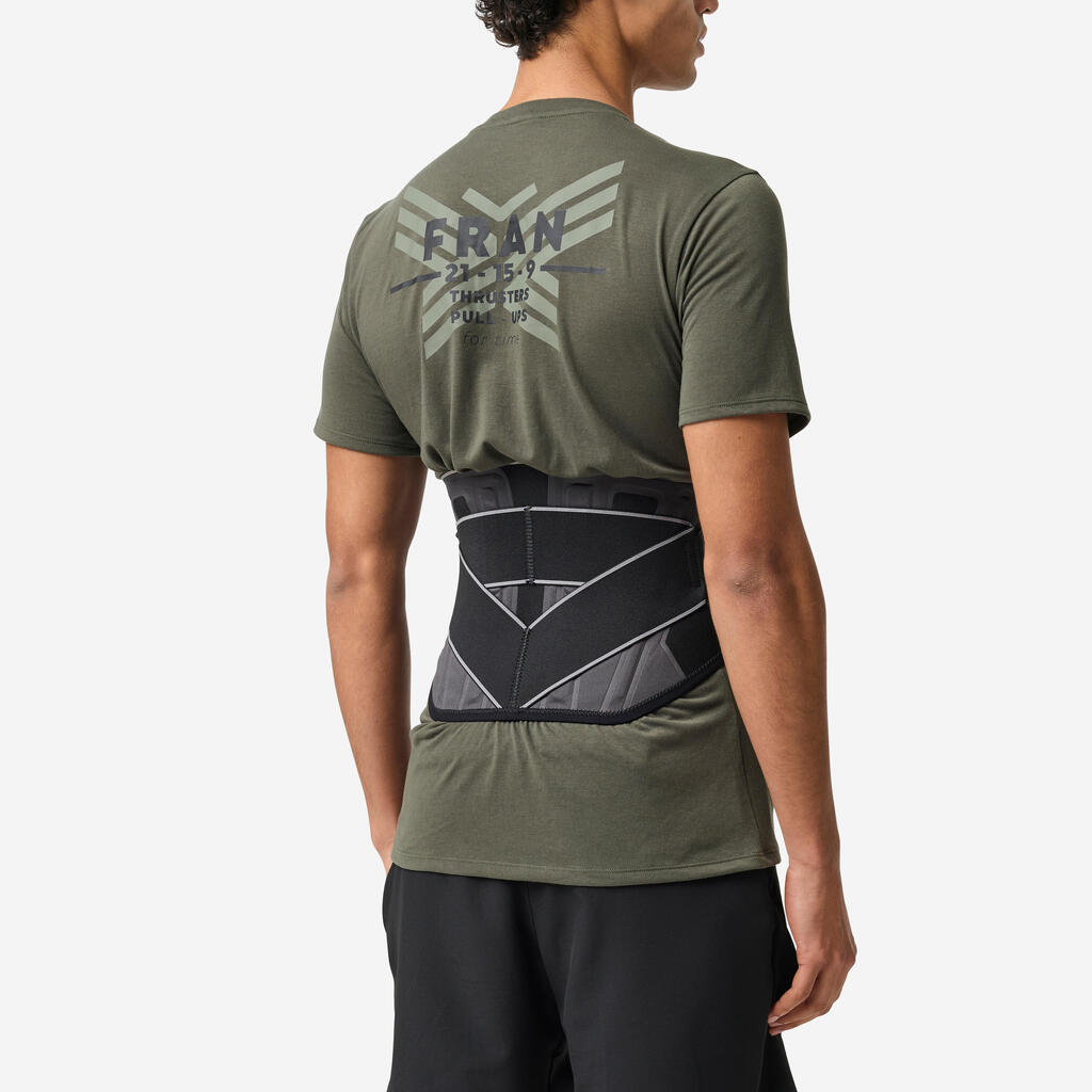 Cette ceinture lombaire offre un maintien renforcé, de niveau 4 sur 5, grâce à ses renforts souples. Portez-la pendant votre séance de sport.