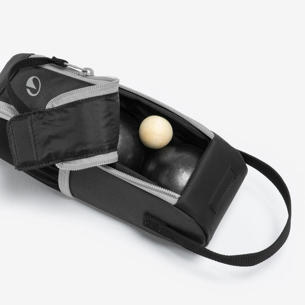 Conçue pour le joueur de pétanque souhaitant transporter 3 boules et des accessoires, avec un accès facilité grâce à sa double fermeture et son aimant.