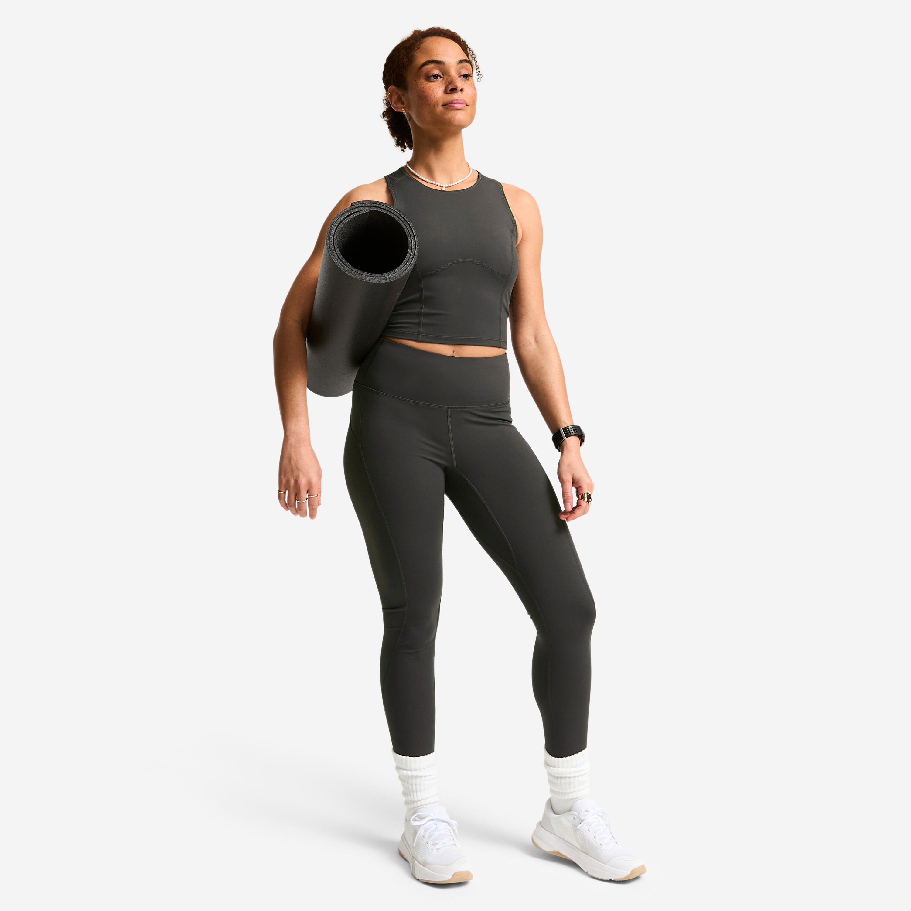 Legging de sport taille haute gainant femme, gris foncé