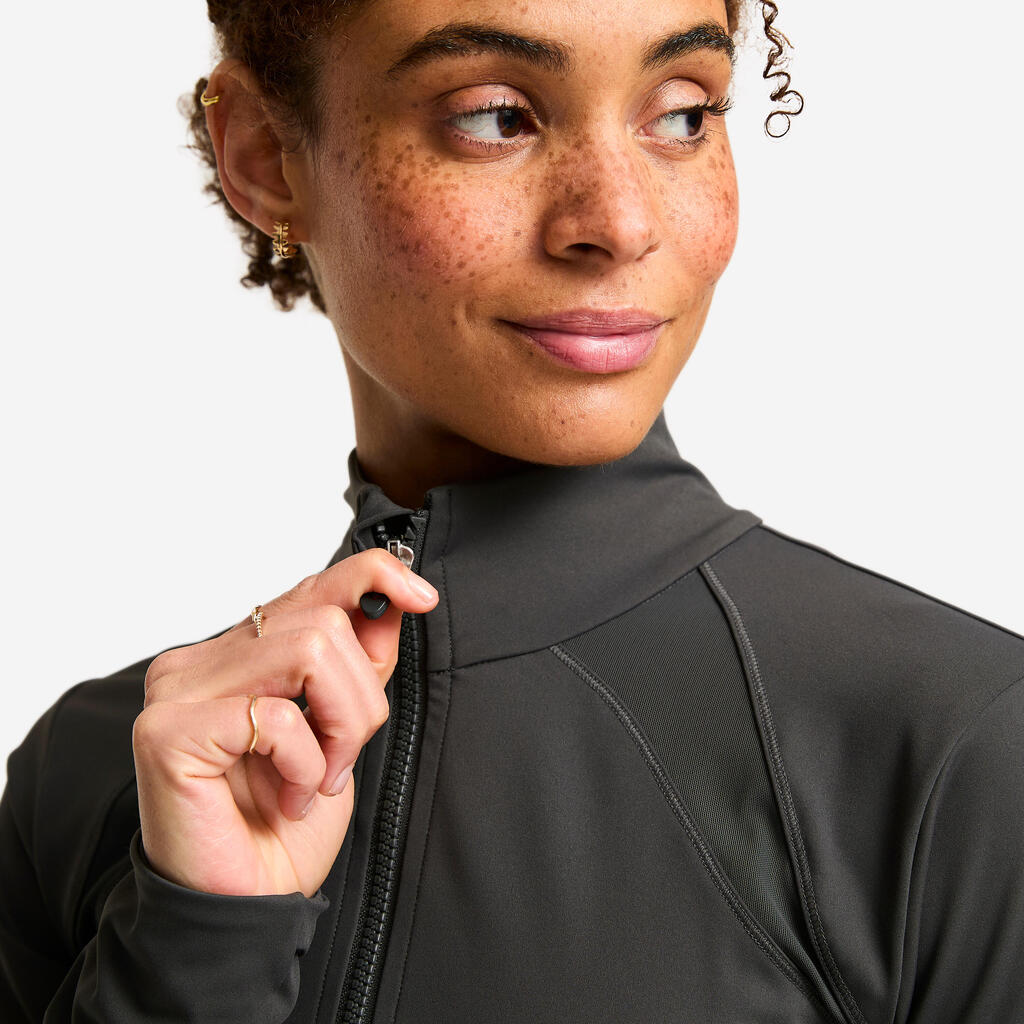 Cette veste cintrée près du corps évacue la transpiration et sublime votre silhouette avec ses découpes résille féminines.