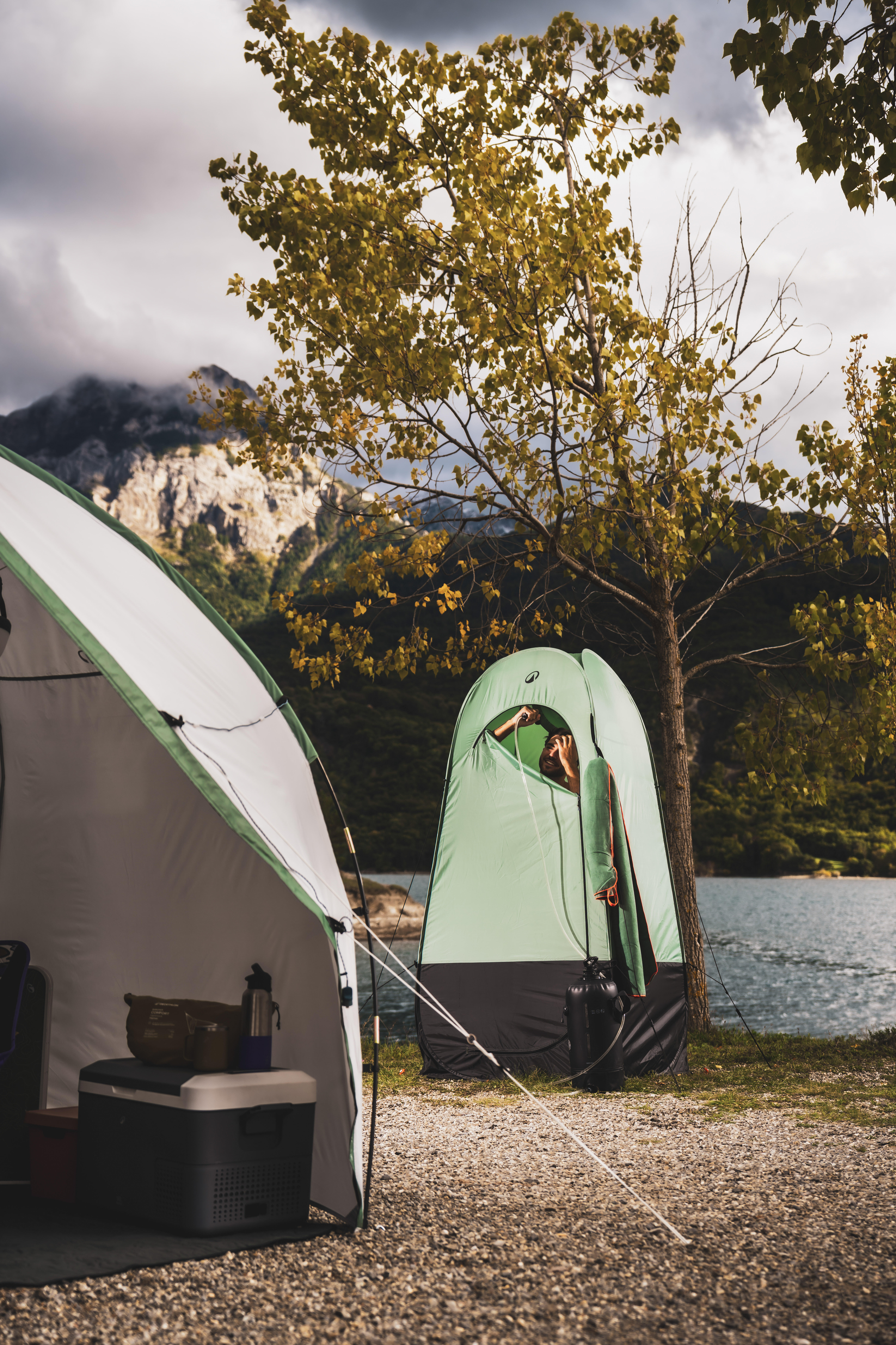 Besoin d'intimité ? Cette cabine de douche se déploie instantanément et vous protège du vent ou des regards lors de vos moments en plein air.