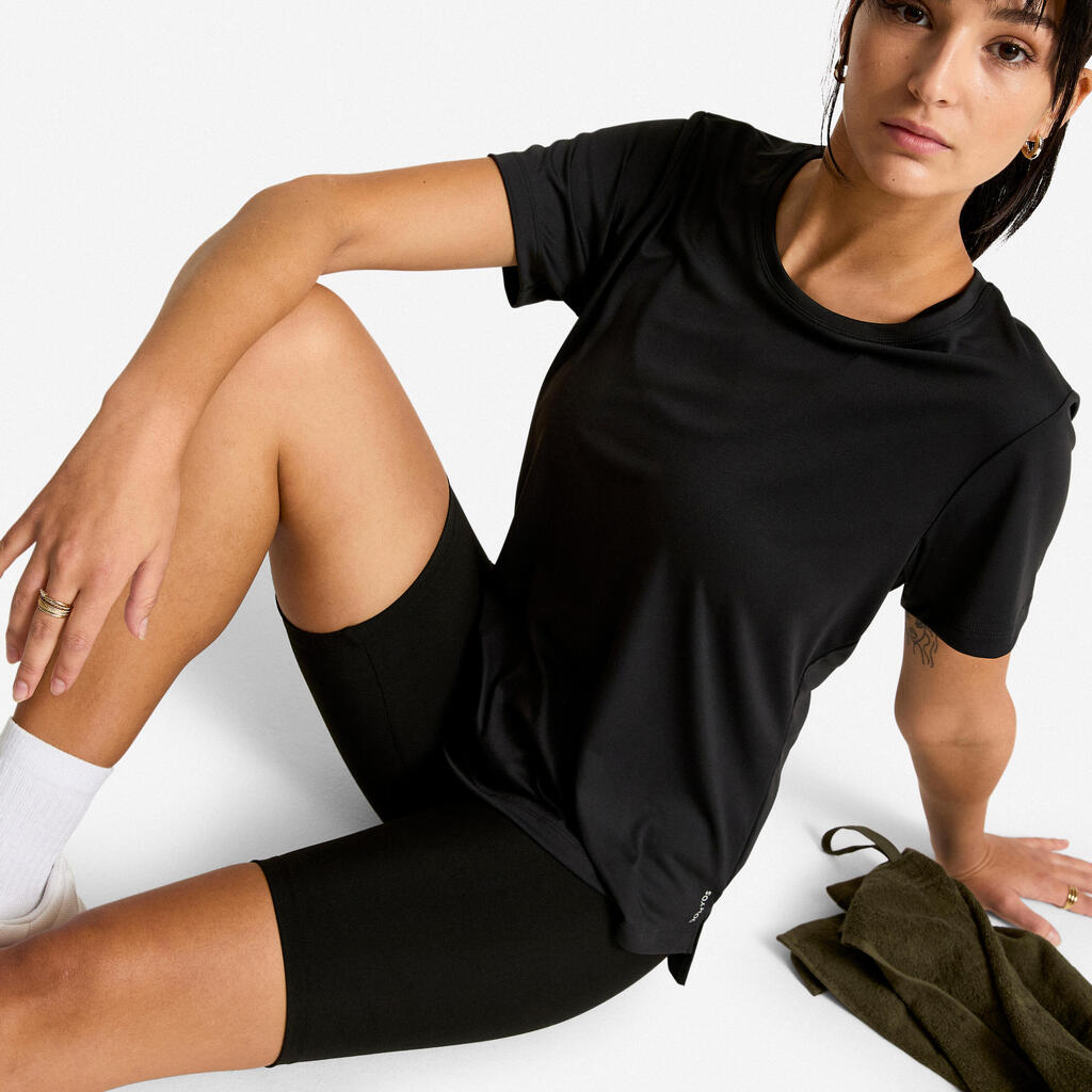 Sa matière extensible suit vos mouvements avec souplesse. Son petit plus ? Une ceinture simple qui en fait un basique confortable et abordable de votre vestiaire sportif.