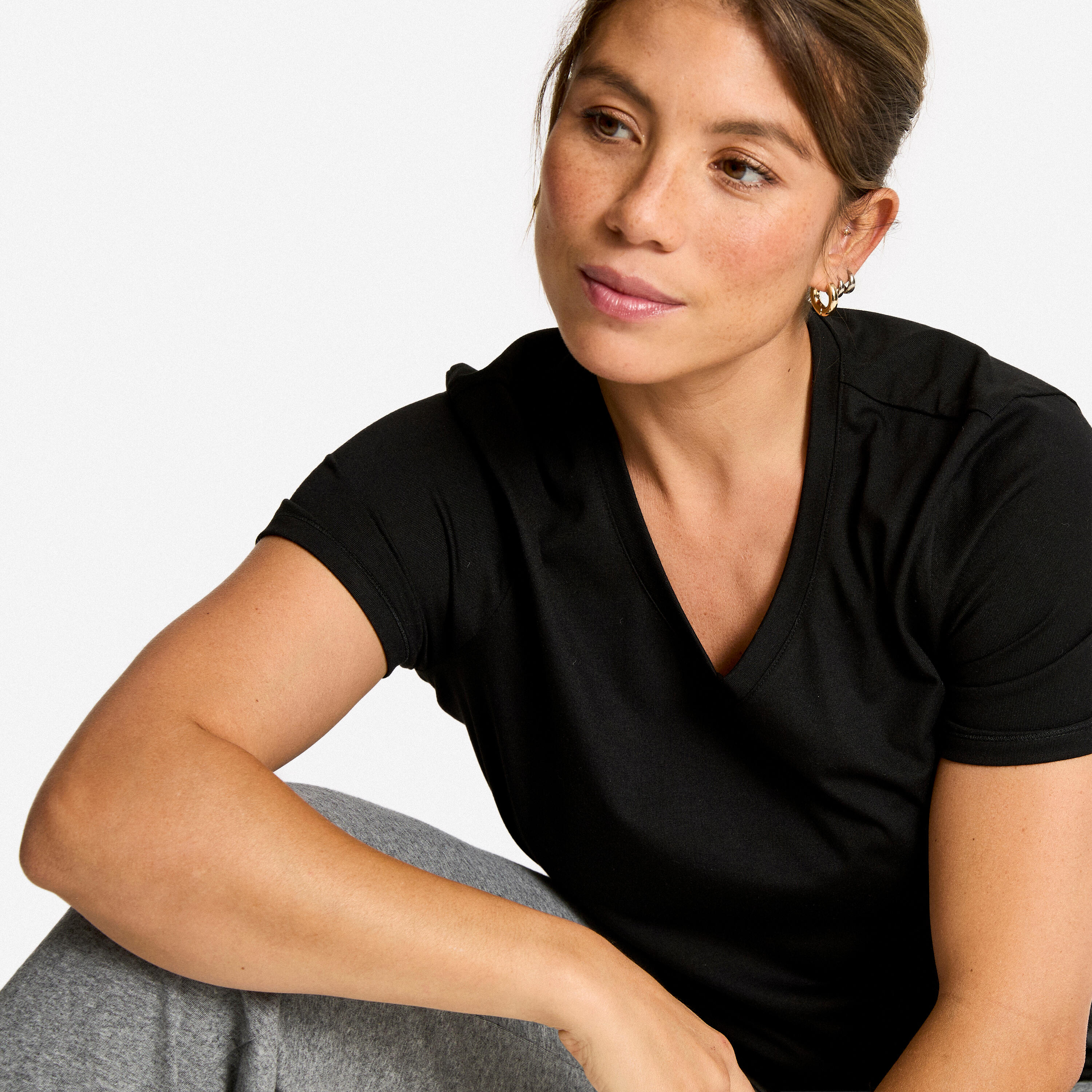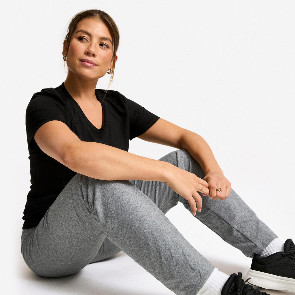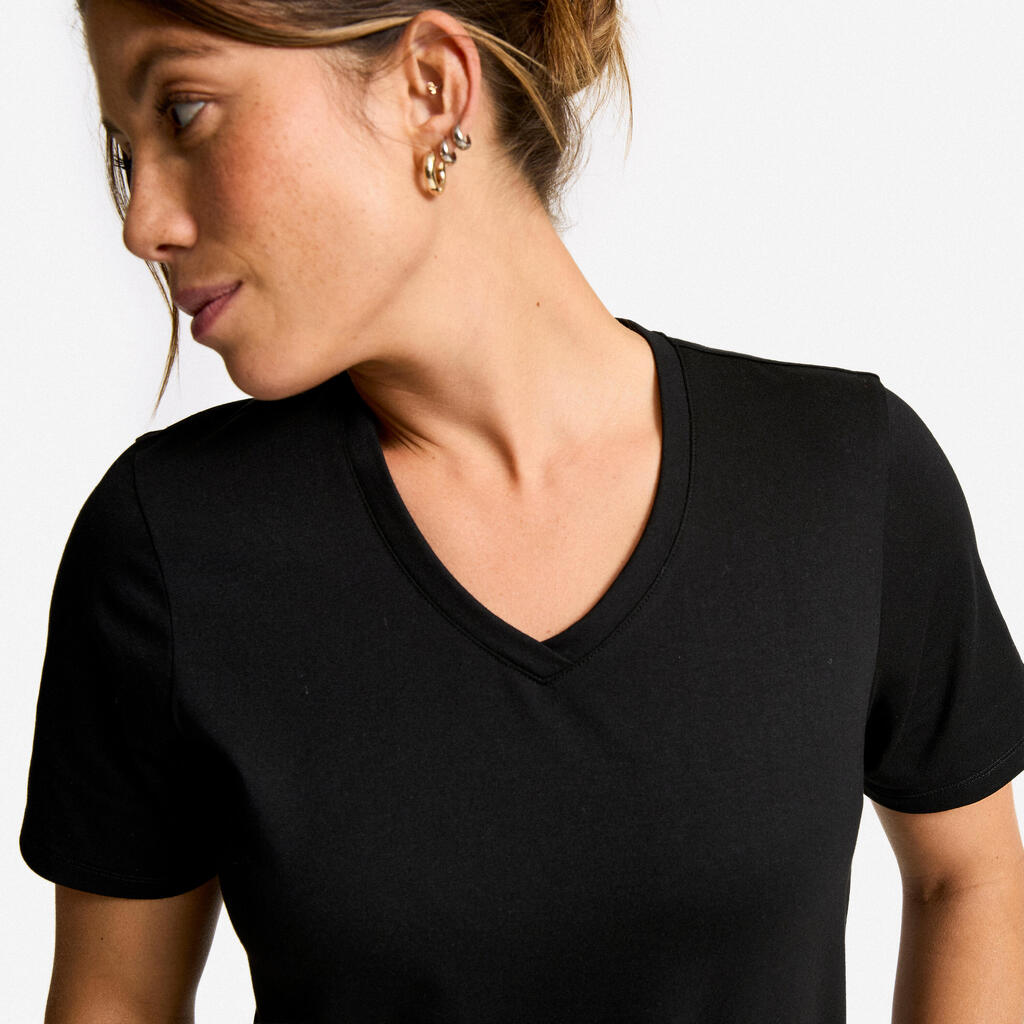 Le col V apporte une touche féminine à la coupe droite. Les 30% de modal assurent fluidité et douceur. La fibre COOLMAX® vous garde fraîche et au sec pendant votre séance.