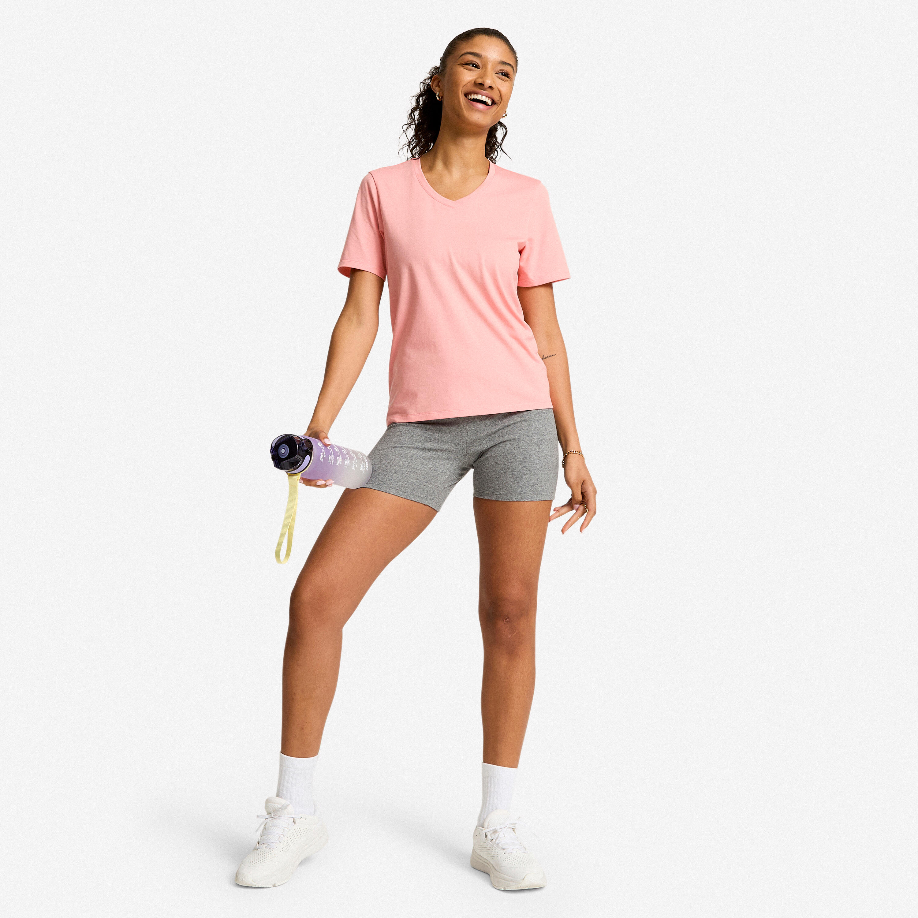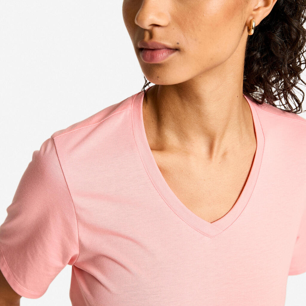 Le col V apporte une touche féminine à la coupe droite. Les 30% de modal assurent fluidité et douceur. La fibre COOLMAX® vous garde fraîche et au sec pendant votre séance.