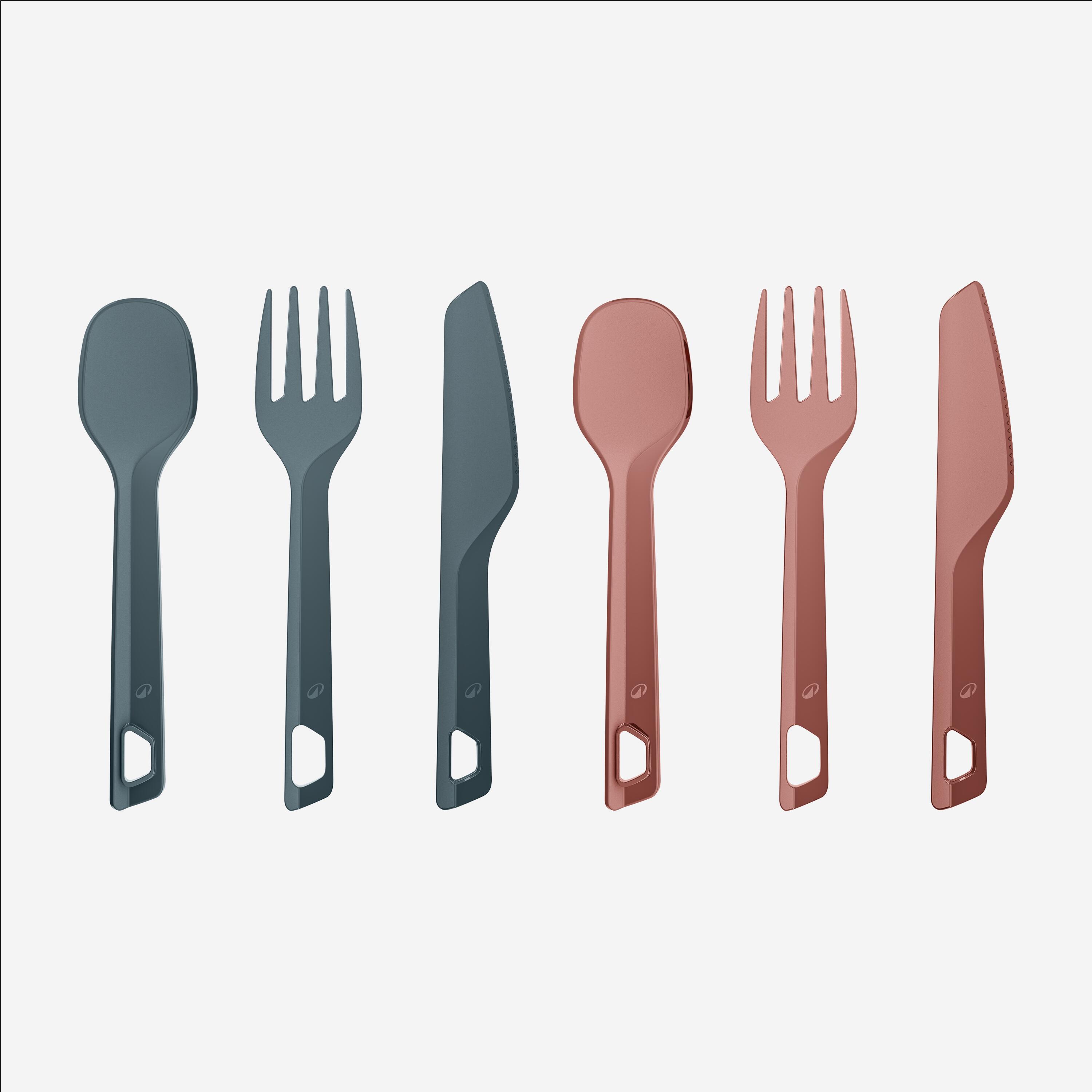 - 2 sets de 3 couverts (fourchette, cuillère, couteau) clipsables (20g le set)