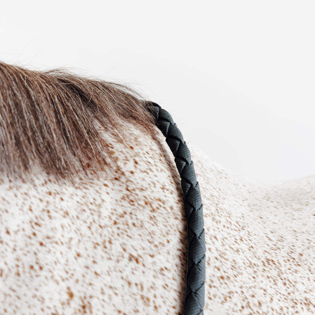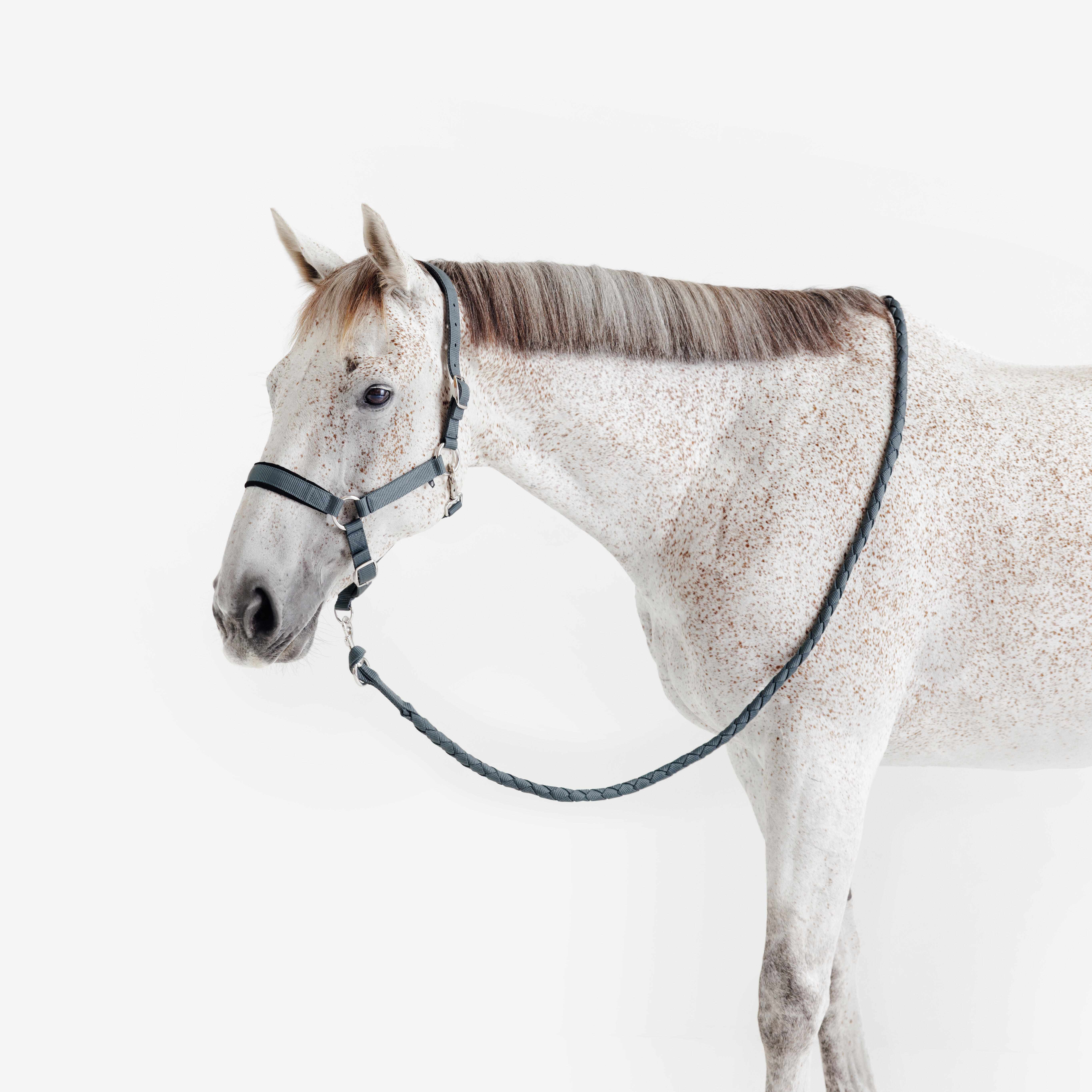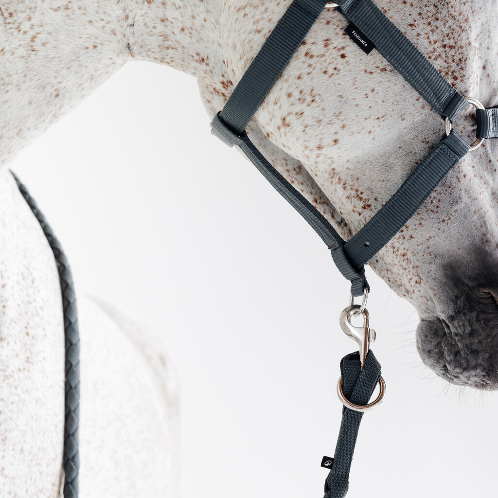 Ce kit licol et longe accompagne le cavalier pour les activités aux écuries avec le cheval : lors des déplacements, de l'attache, pour le faire brouter ...