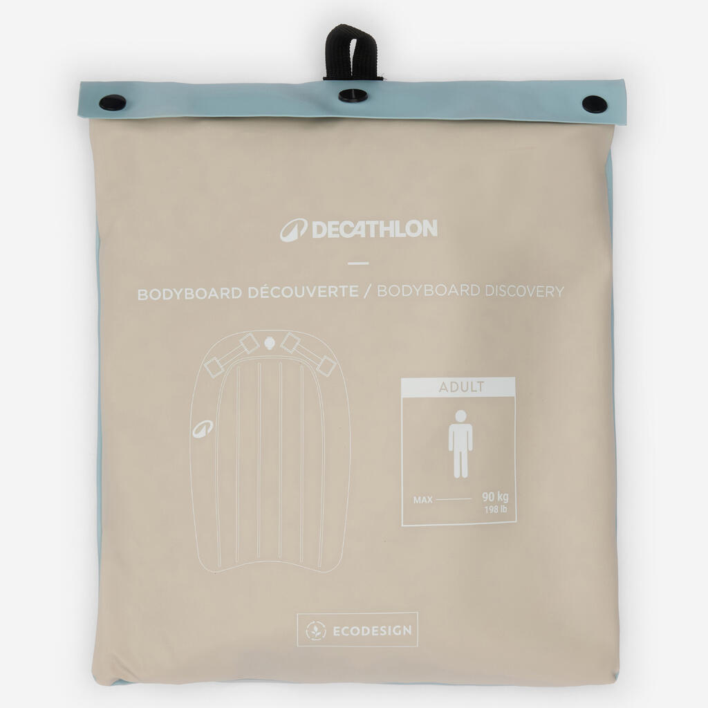 Conçu pour attraper et glisser sur les mousses du bord de mer, ce produit s'utilise là où l'utilisateur a pied, avec de l'eau jusqu'au nombril. Au passage d'une petite mousse (<1m) l'utilisateur pousse sur ses pieds en direction de la plage et se met à plat ventre sur le bodyboard, mains sous les poignées qui attrapent l'avant du bodyboard, bras pliés et jambes tendues en arrière. Palmes inutiles. La texture du tissu permet un contact agréable avec la peau. L'application de wax est inutile.