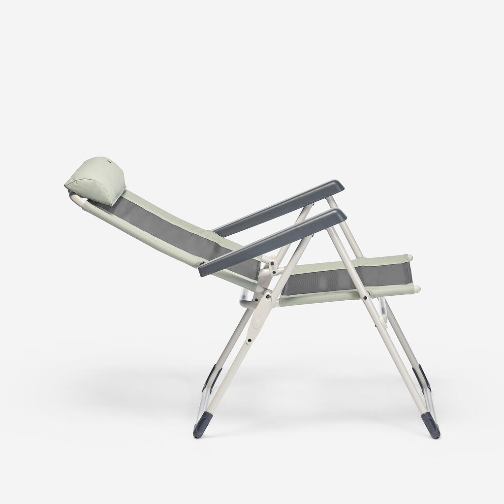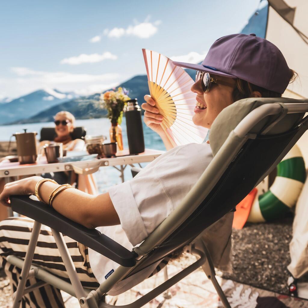 Notre fauteuil de camping s'adapte à vos envies : dossier inclinable, accoudoirs et repose-tête. Relaxez-vous partout comme si vous étiez chez vous !