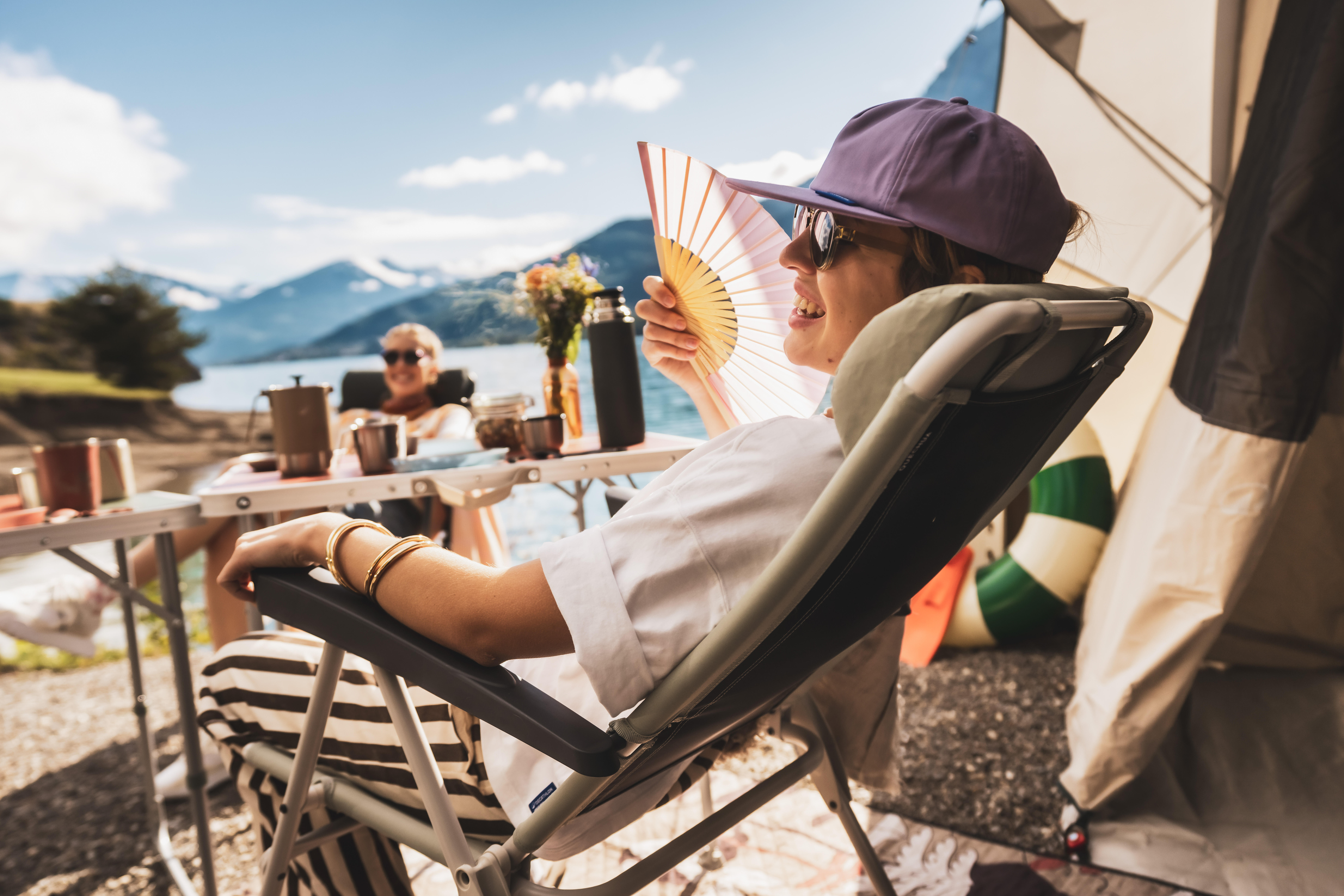 Voyagez léger, campez confortablement ! Notre fauteuil inclinable se plie en un clin d'œil. Glissez-le dans votre placard ou dans votre coffre. Prêt à partir ?