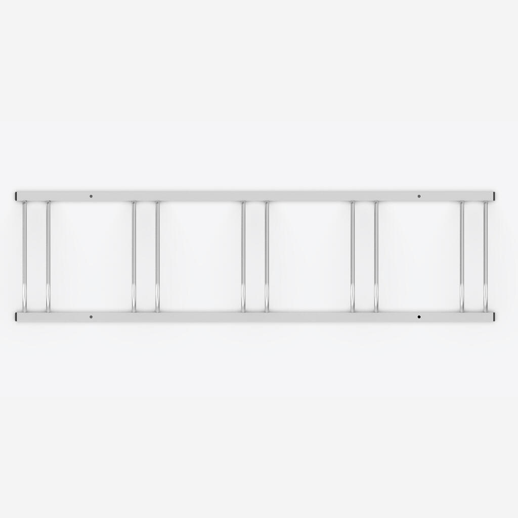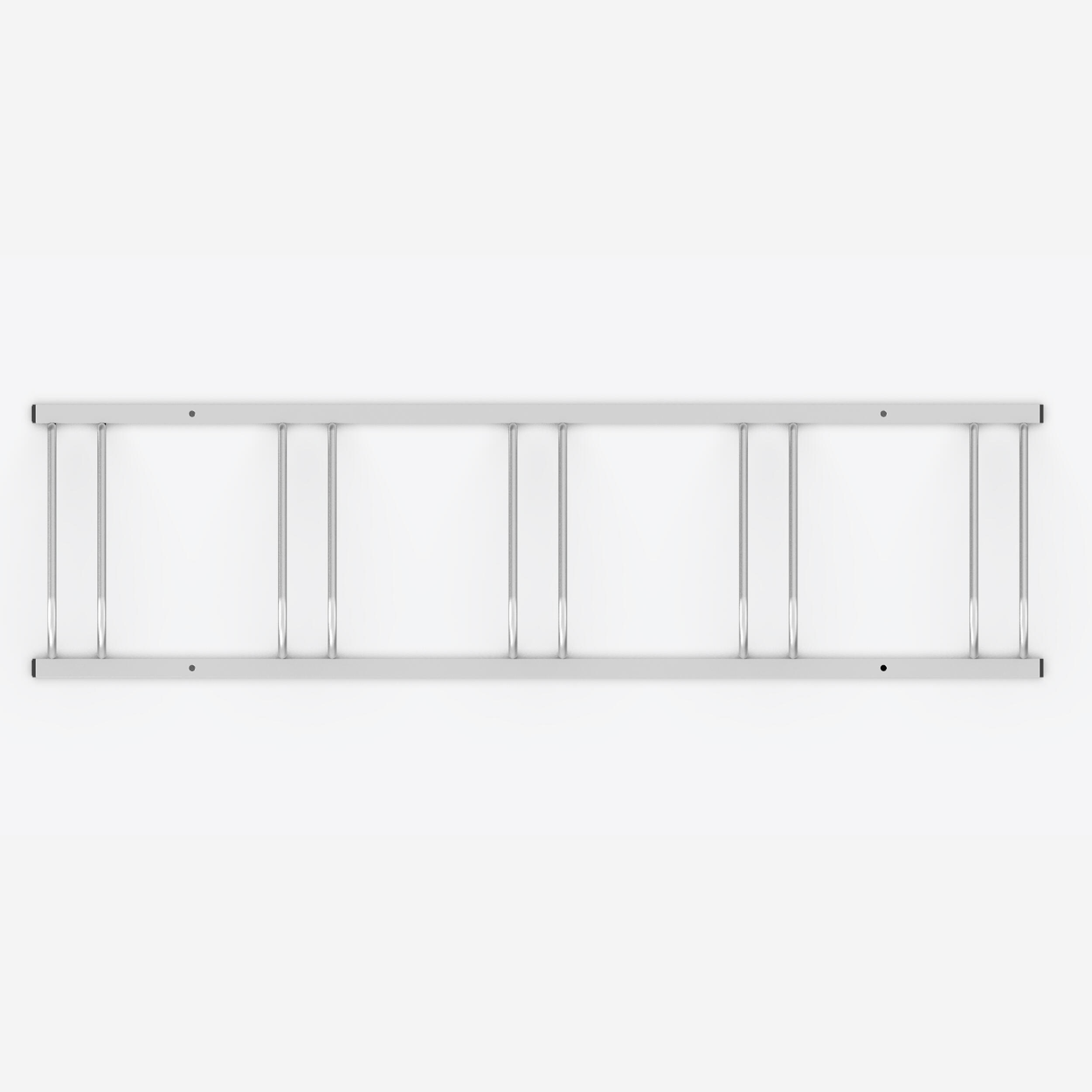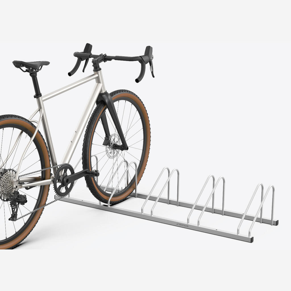 Ce grand râtelier pour 5 vélos se fixe au sol ou au mur (vis non fournies).