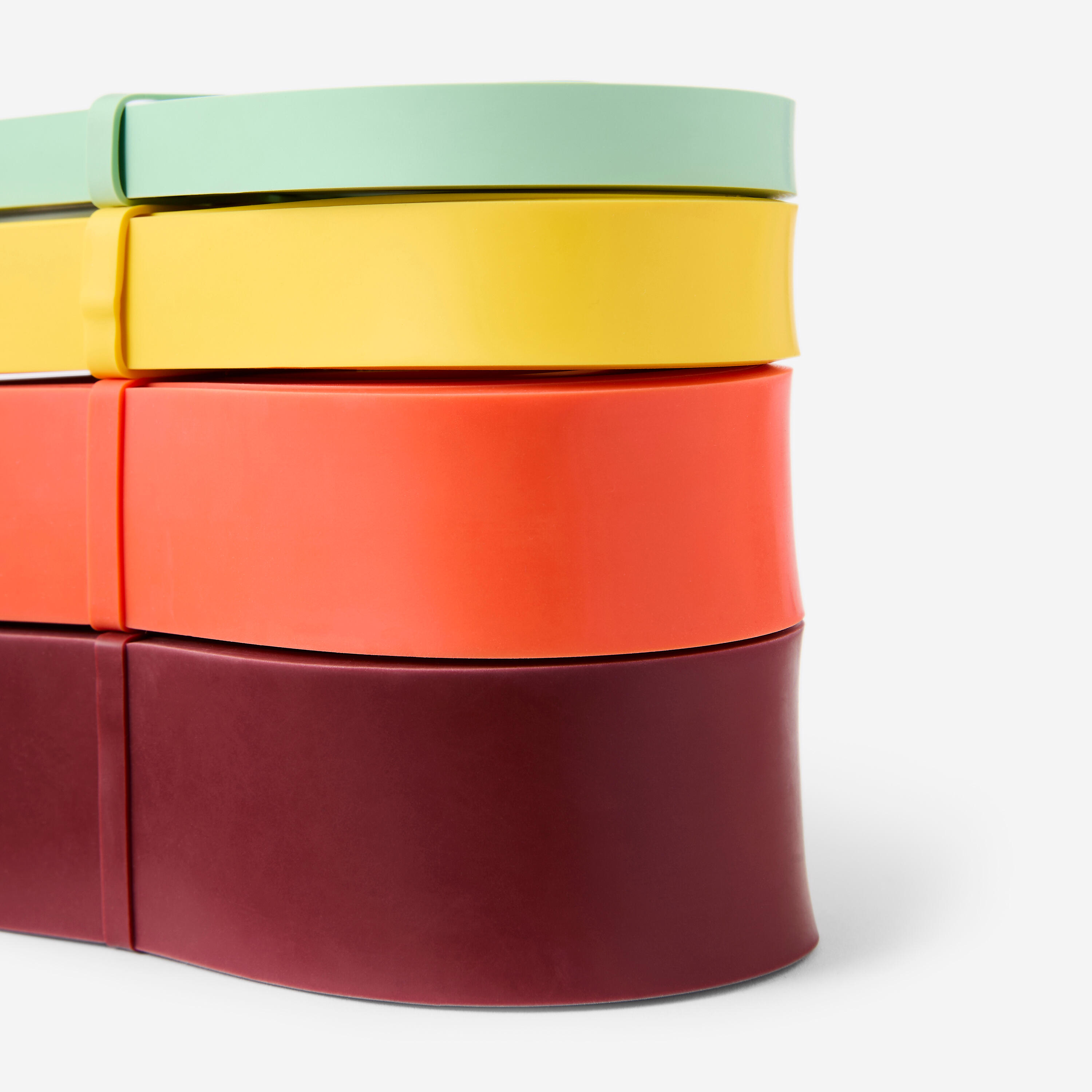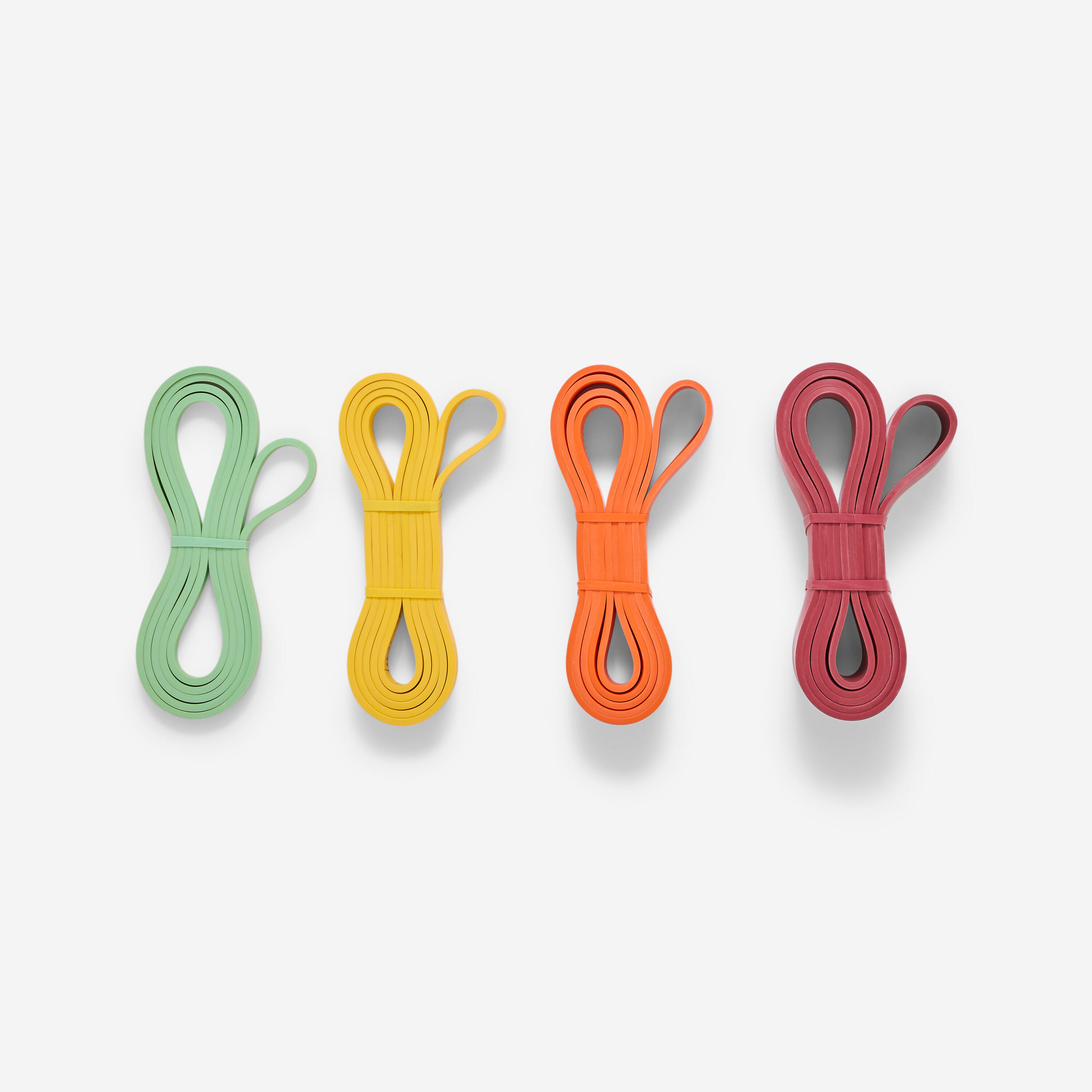 Lot de 4 élastiques de musculation pour des séances full body. Progressez à votre rythme et entraînez-vous partout en les glissant dans votre sac. Pour l'inspiration, profitez de Freeletics.