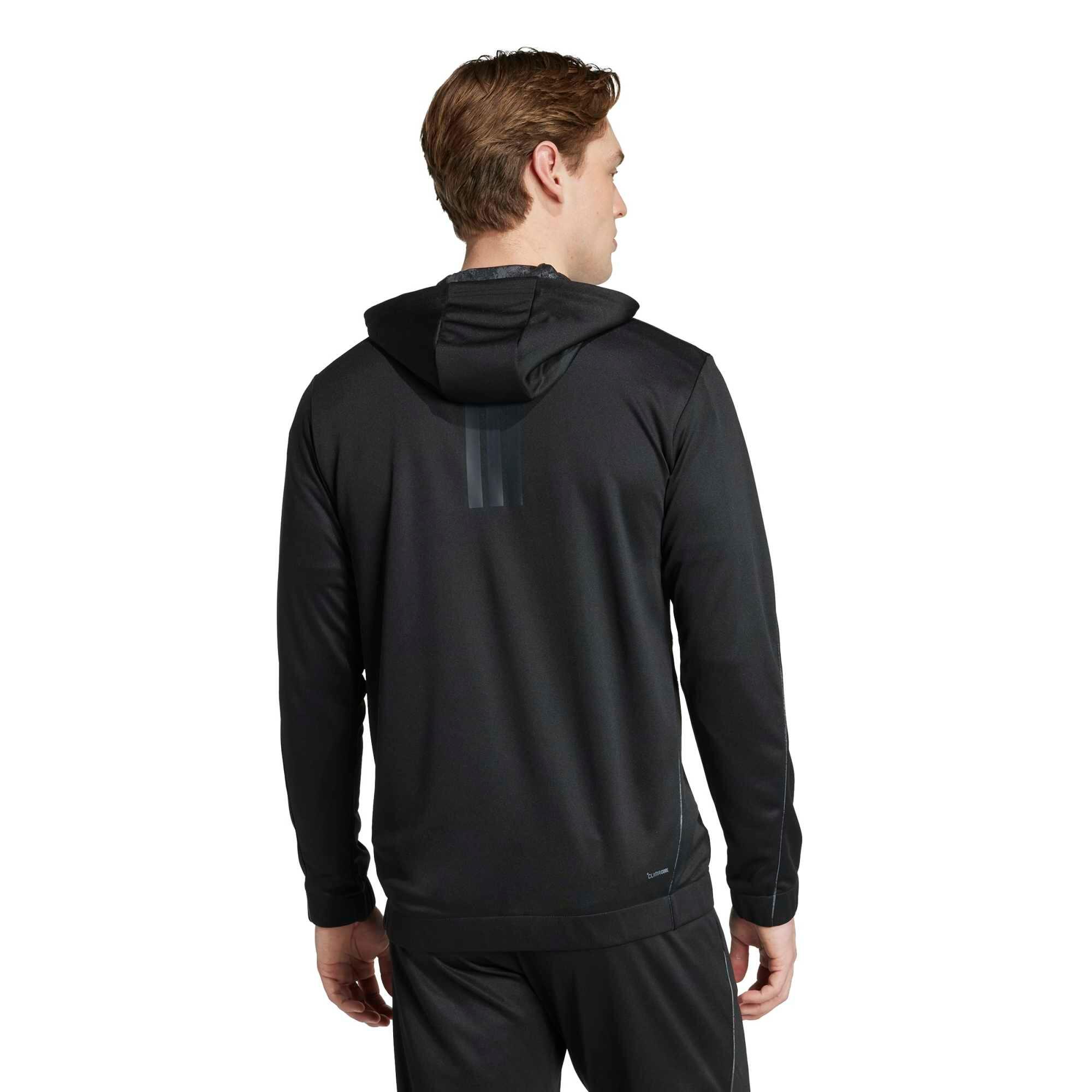 Ce sweat à capuche Adidas polyvalent arbore des détails camouflage qui apportent une touche de style à votre tenue de sport.