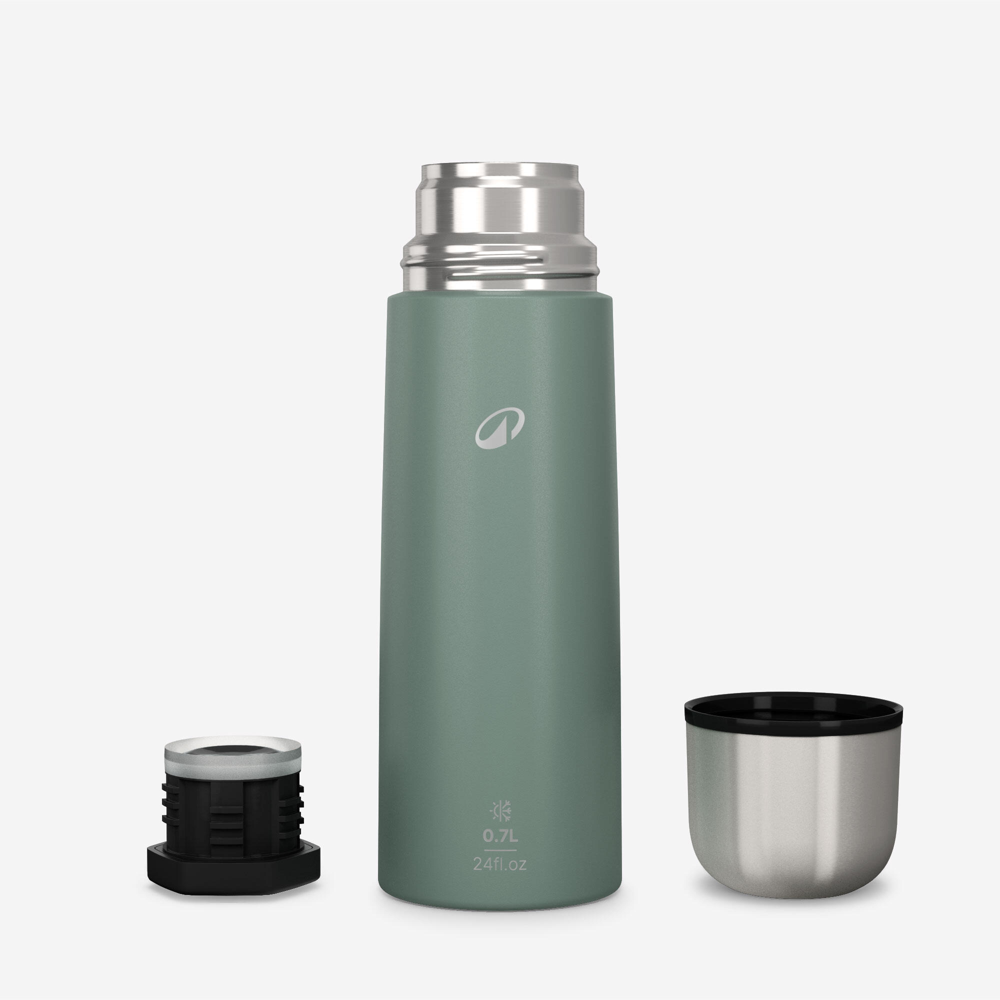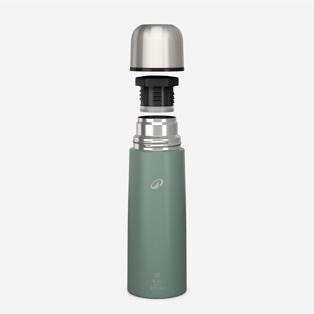 Simple et solide et très isolante, le bouchon fiable s'ouvre en un quart de tour, gobelet inclus / 0,7 litre.