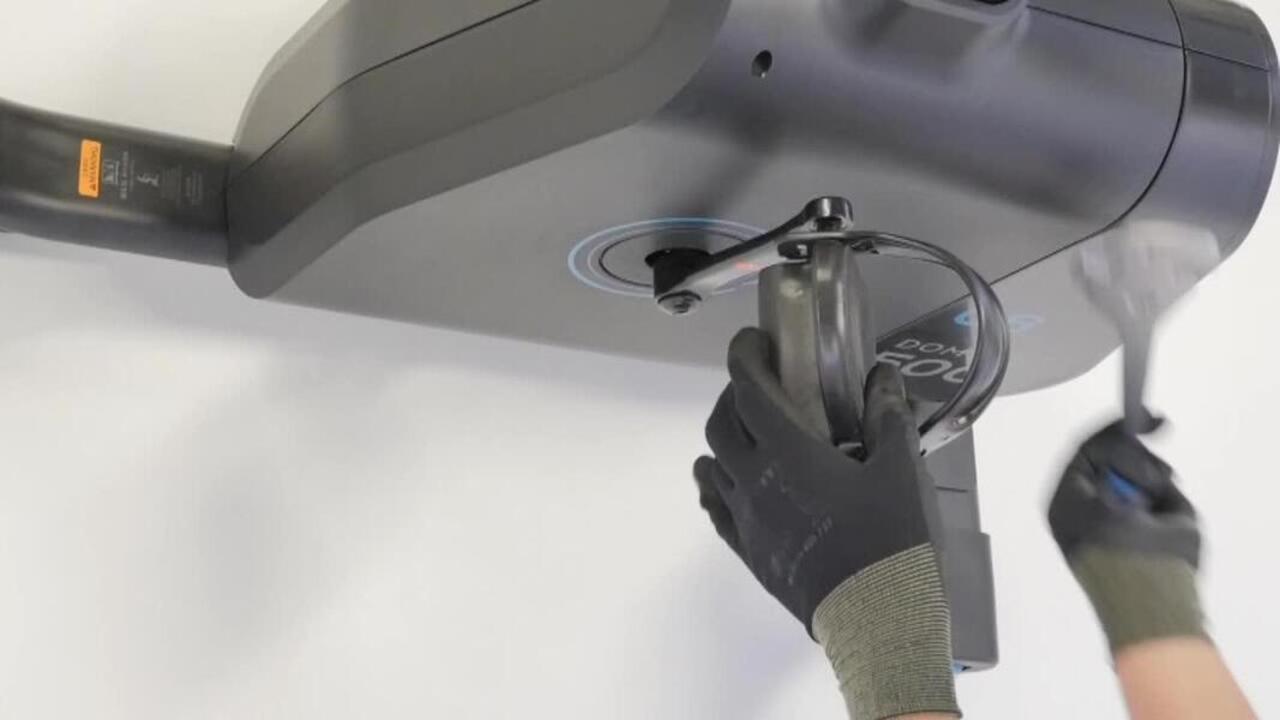 Utilisez la clef fournie avec l'appareil ou une clef plate N°15. Pédale droite (R)sens horaire pour visser. Pédale gauche (L) sens antihoraire pour visser.