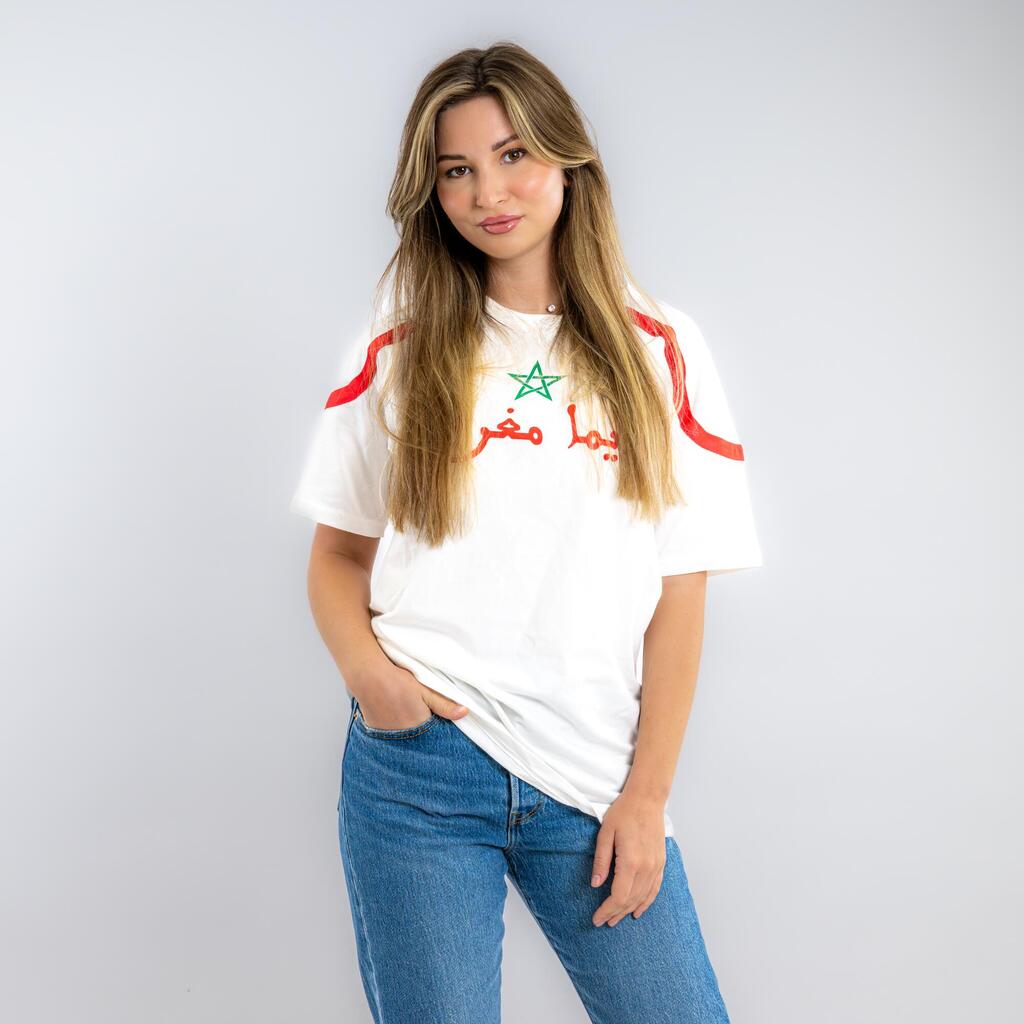 Un t-shirt supporter 100 % coton, doux et fabriqué au Maroc. Confortable, stylé et inspiré des couleurs du Maroc, il est idéal pour vibrer pendant la CAN et afficher fièrement votre passion.