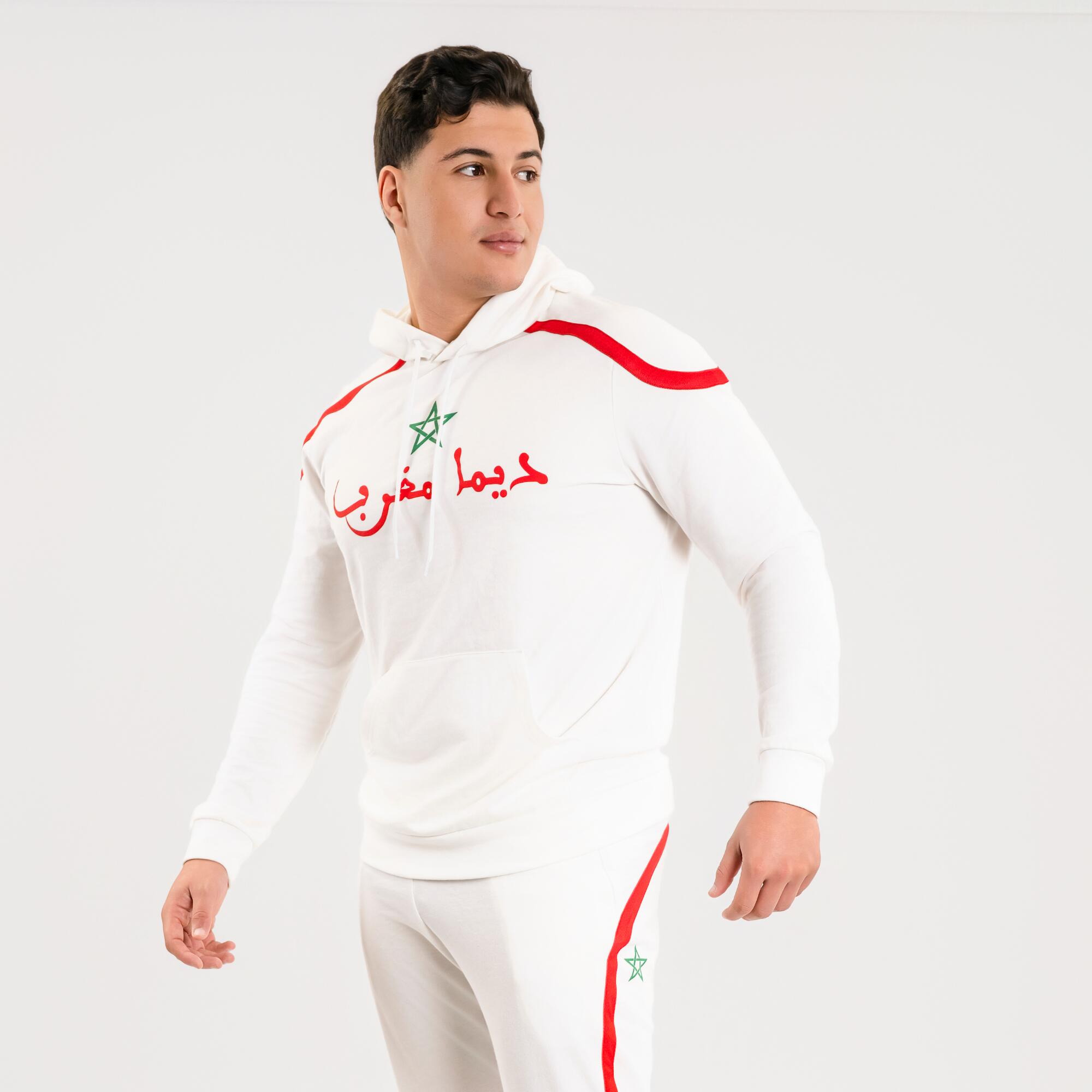 Montrez votre soutien aux Lions de l’Atlas avec ce hoodie 100 % coton, fabriqué au Maroc, offrant confort, style et fierté pour vivre la CAN au quotidien.